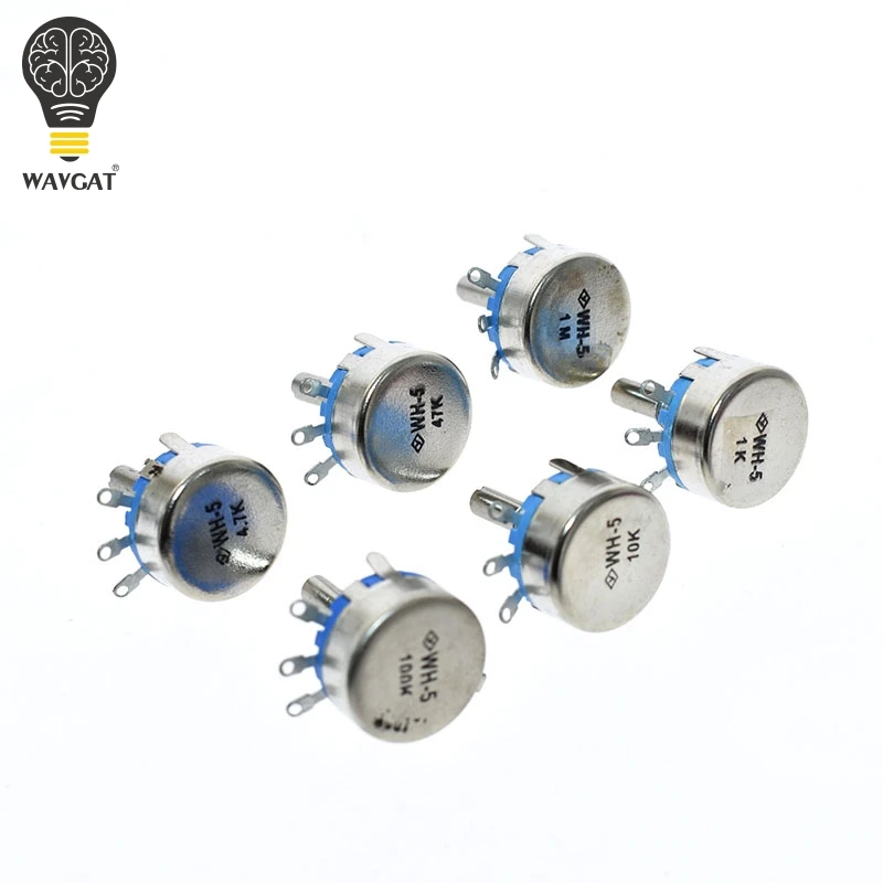 WH5-1A карбоновый потенциометр 1K 2K 10K 47K 4K7 470R 100K 470K 220K 1K5 22K 1M ohm 3 терминала, круглый вал, вращающийся конический WH5