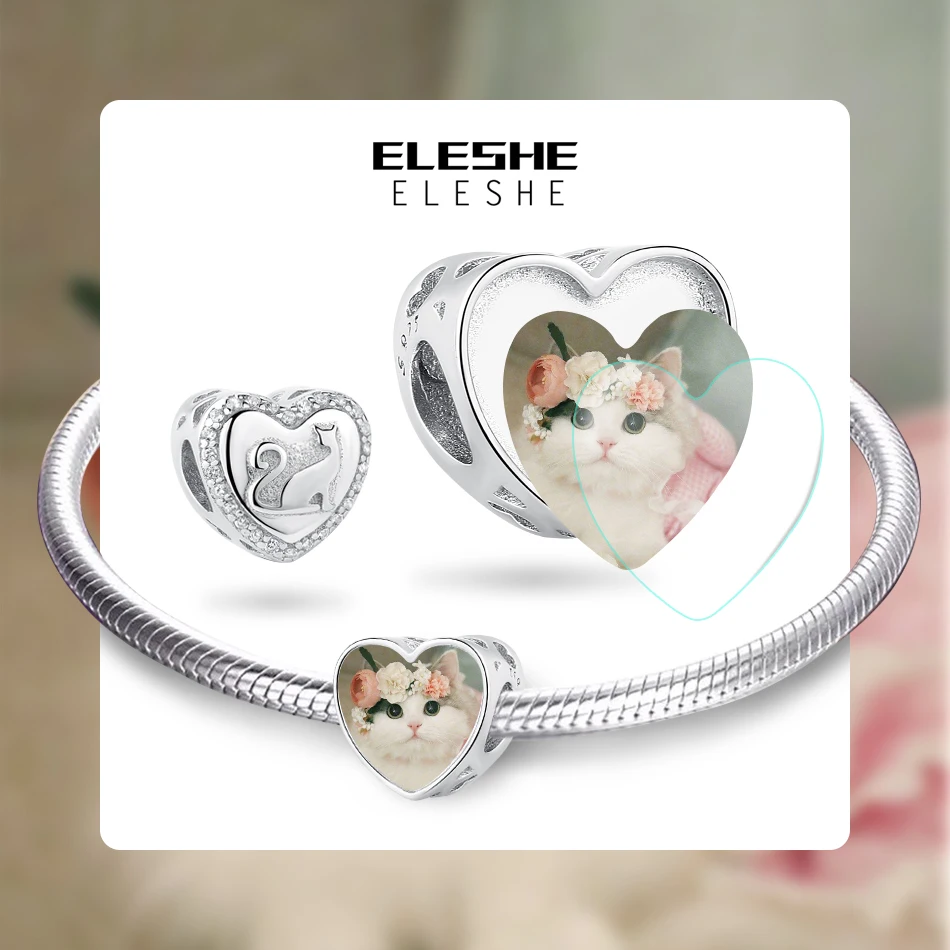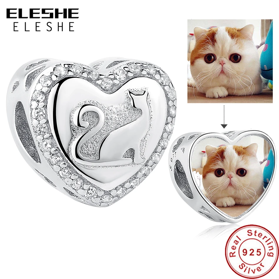 ELESHE, персонализированные пользовательские фото Шарм 925 стерлингового серебра с изображением животных, котов CZ сердце бусины для браслетов и ожерелий DIY, иных ювелирные изделия