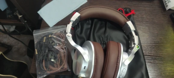 Отличный товар за свои деньги! Касаемо подробностей: звук у наушников достойный. Не Маршалл, конечно же, но все-таки. Материал на амбюшурах и оголовнике - синтетика (около кожзама), неплохо, но ткань на моих стареньких РИГах была практичнее: если долго сидеть в них, особенно летом, обязательно будут потеть уши. Как плюс, так и минус можно считать складную конструкцию. Да, это бесспорно удобно, но надёжность элементов под подозрением. Подключение на ушах - 3,5 и 6,3мм и микро юсб для зарядки. В комплекте кабели 3,5-3,5 и 3,5-6,3, а также юсб шнур. Подключение по БТ не составило проблем, потерь в качестве звука не услышал, но не использовал долго, не скажу, сколько держат заряд, микрофон также не опробовал. Дошли быстро, дня за 4. Покупал за 2300. Продавцу спасибо!