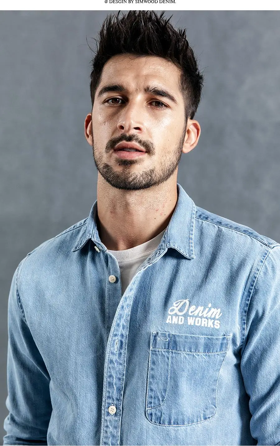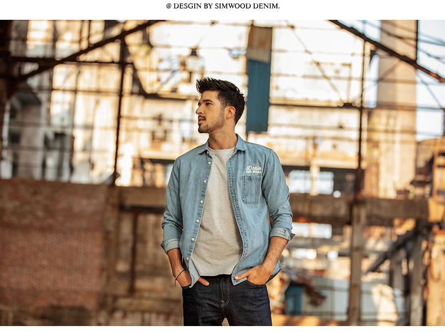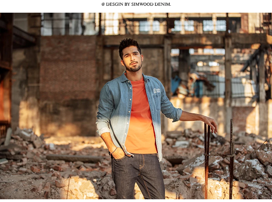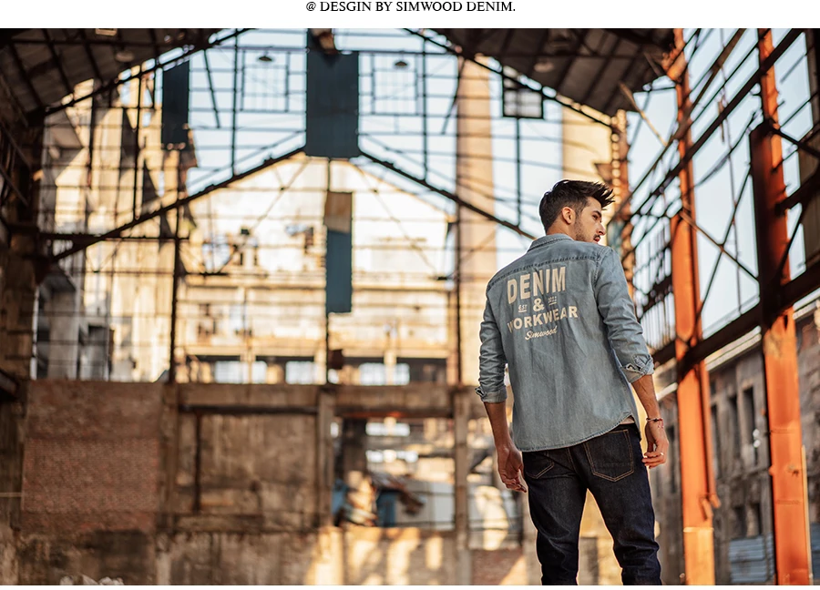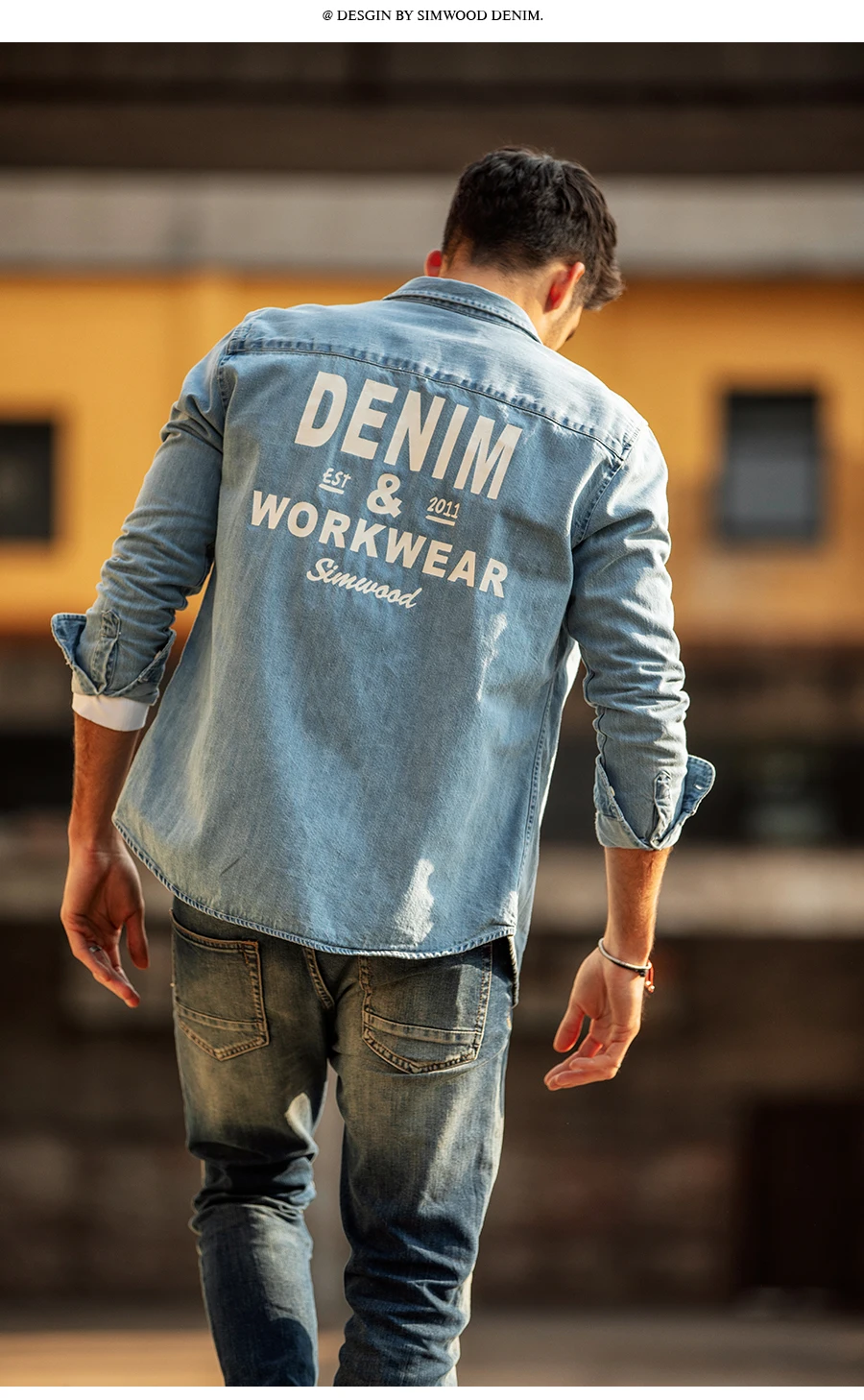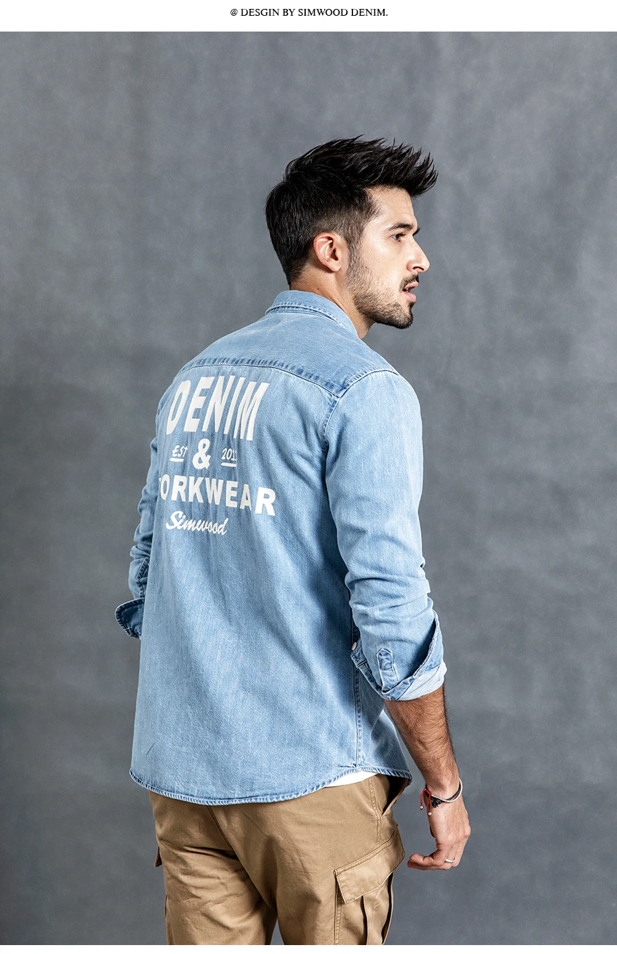 Мужская джинсовая рубашка с принтом SIMWOOD, модная повседневная рубашка с длинными рукавами, модель 190075 большого размера, 2019
