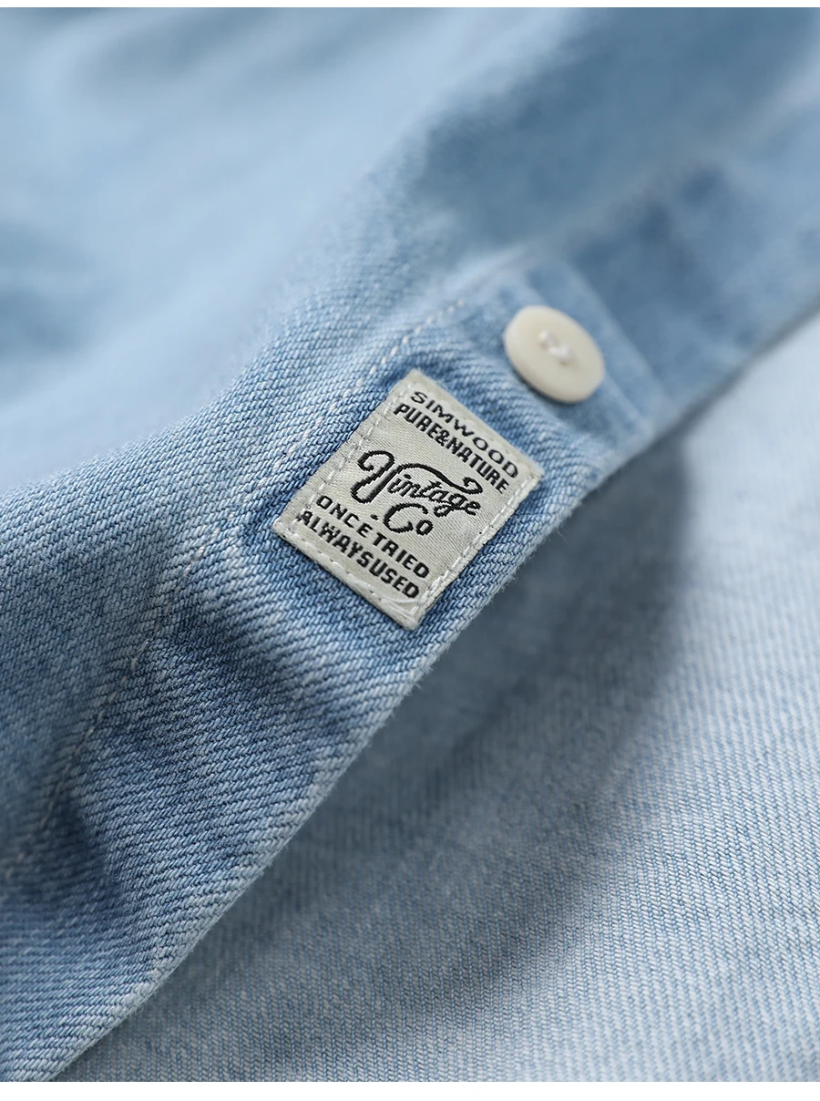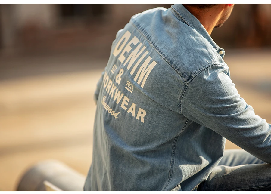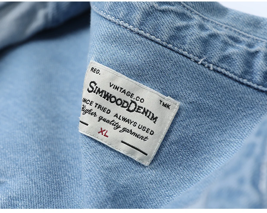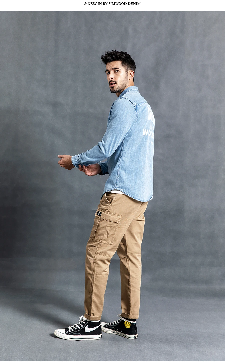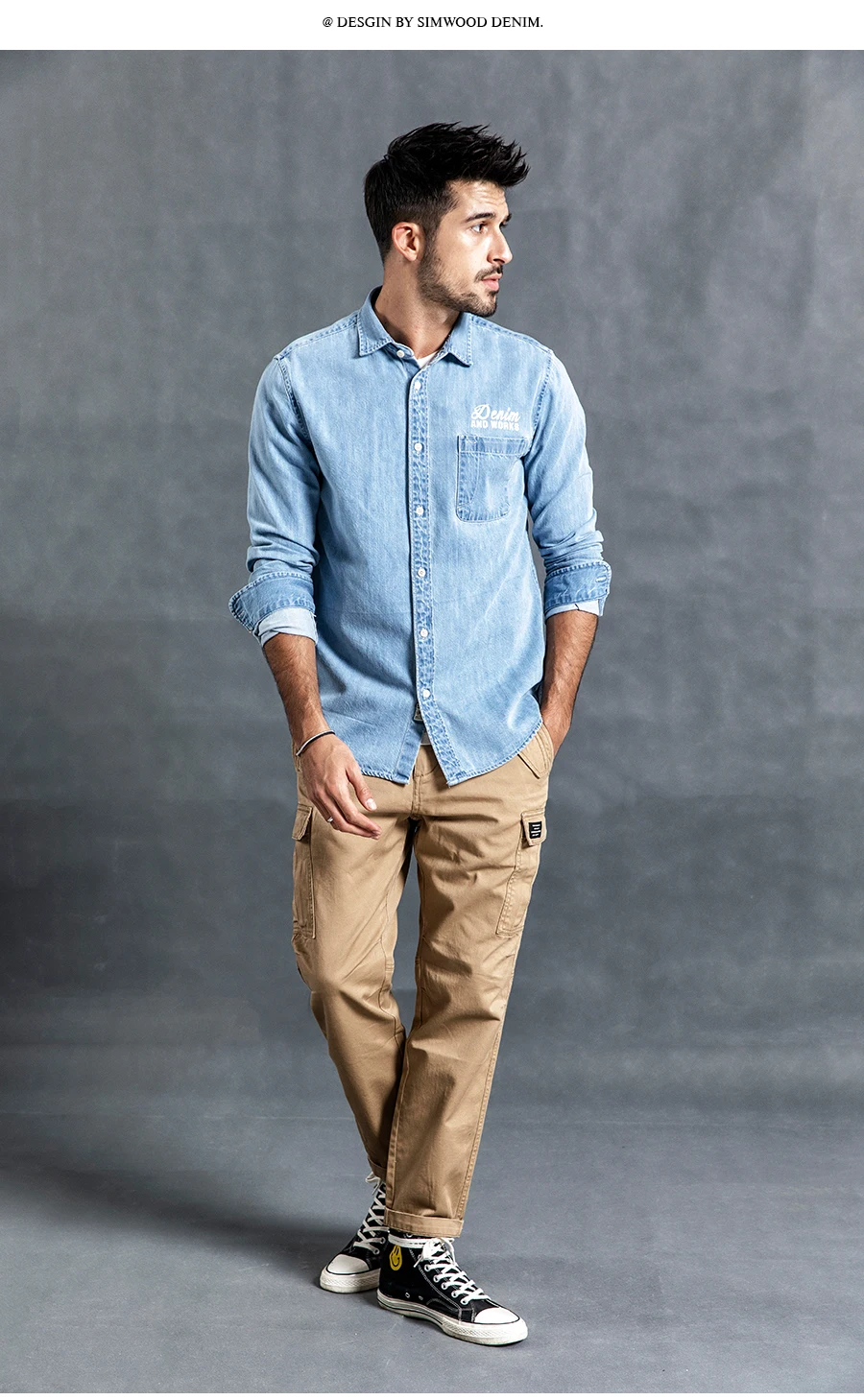 Мужская джинсовая рубашка с принтом SIMWOOD, модная повседневная рубашка с длинными рукавами, модель 190075 большого размера, 2019