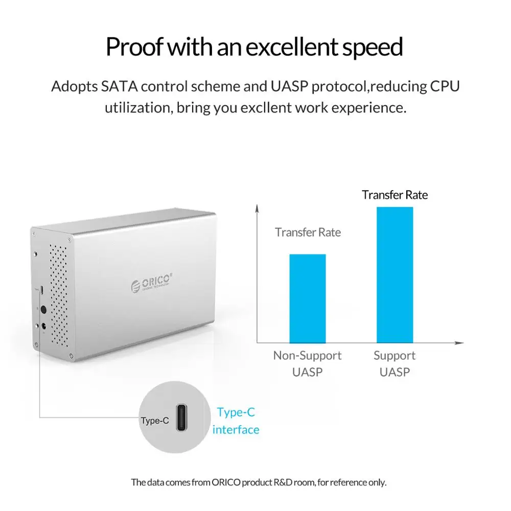 ORICO WS серии 3,5 дюймов 2 Bay Type C HDD док-станция алюминиевый корпус для жесткого диска поддержка 20 ТБ 5 Гбитс 12 В адаптер HDD Чехол