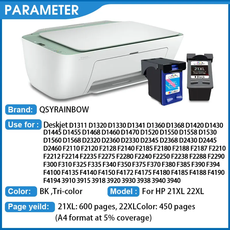 Восстановленный картридж QSYRAINBOW 21xl для HP 21, HP 21xL, hp f4180, картридж DeskJet 3910 3915