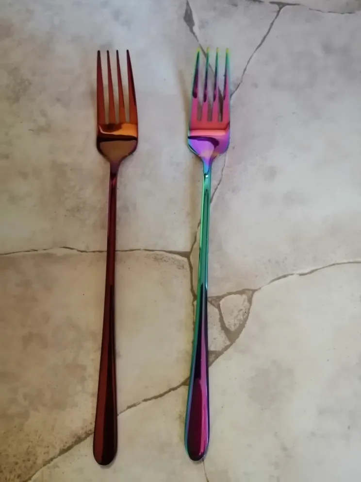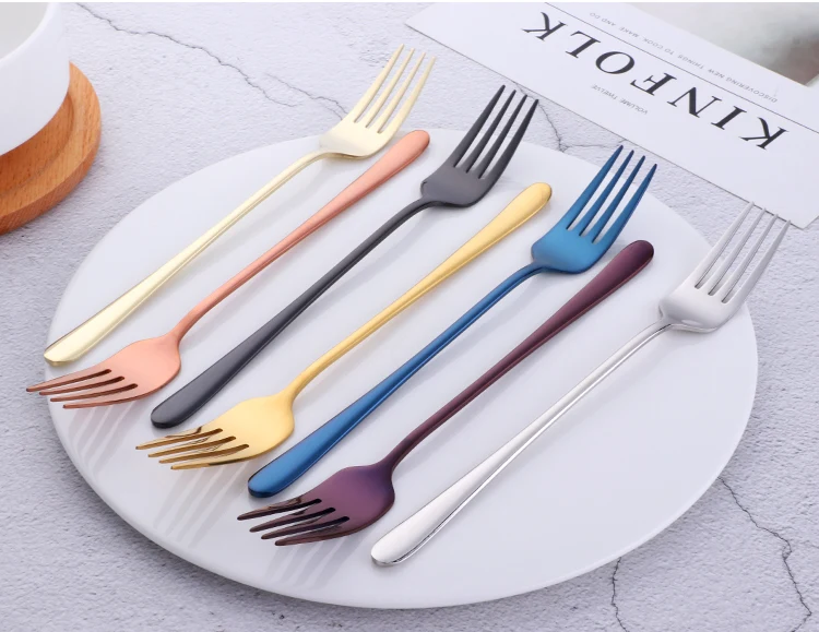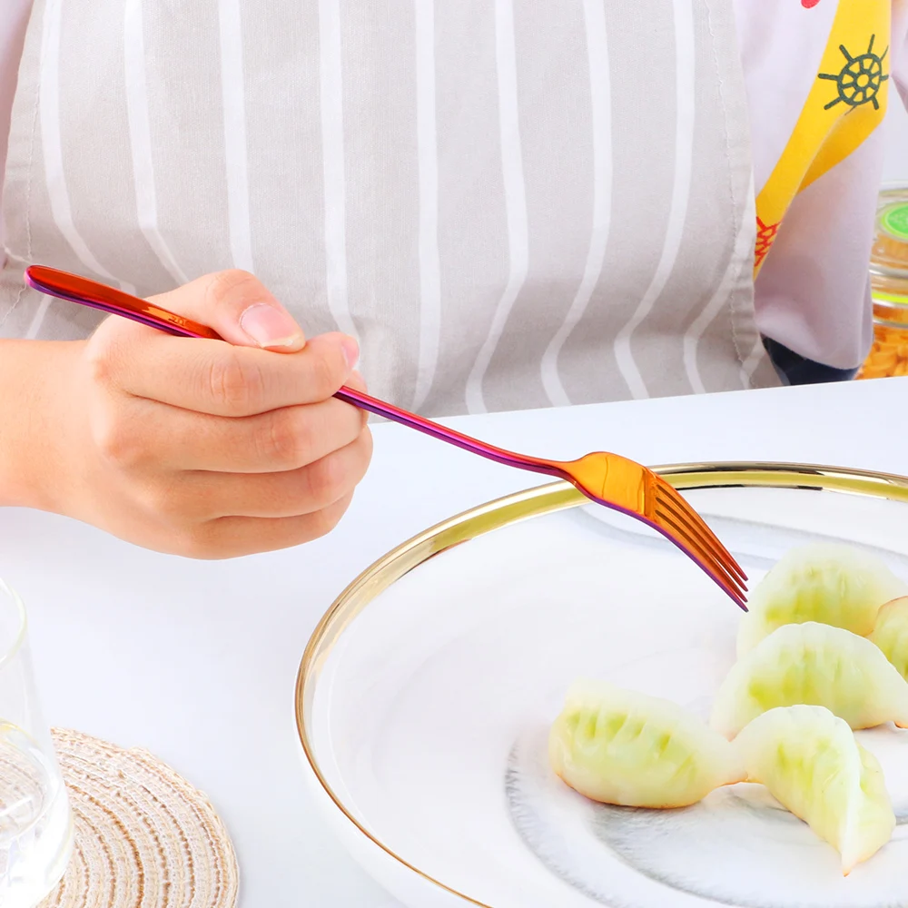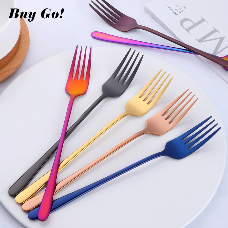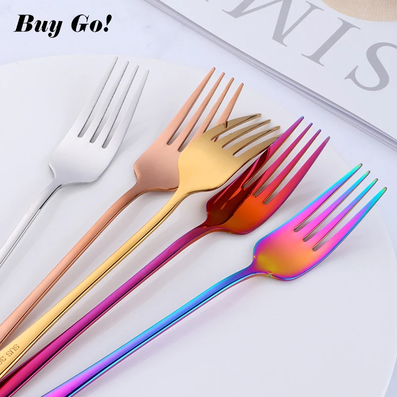 1 шт. из нержавеющей стали корейский Радуга торт фрукт вилка столовая вилка для салата столовая посуда Золотая Десертная Вилка для отеля вечевечерние кухонный инструмент