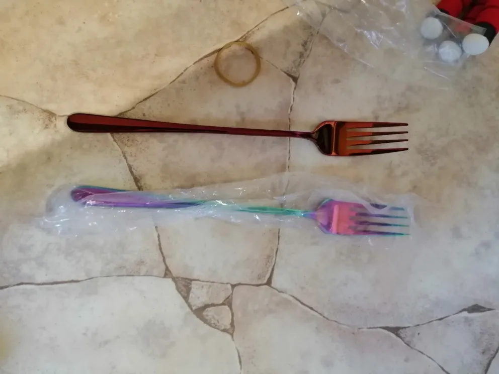 Продавец отправил товар быстро. Трек номер посылки отслеживался постоянно. Упаковано всё в хороший пупырчатый почтовый пакет. Всё дошло целое и вилки не пострадали. Вилки просто супер! Тяжеленькие, цвет как заказывала. Ручки длинные и я такие люблю. У нас таких точно нет в магазине. Сколов и прочих недостатков нет. Я очень довольна покупкой! Продавцу большая благодарность!