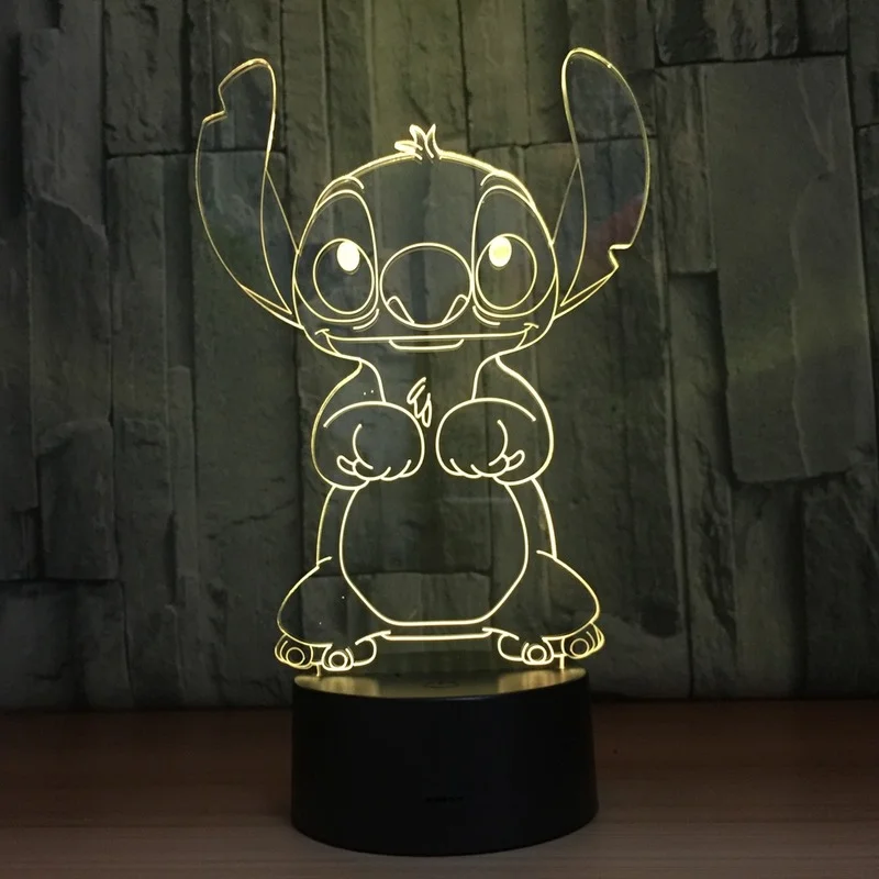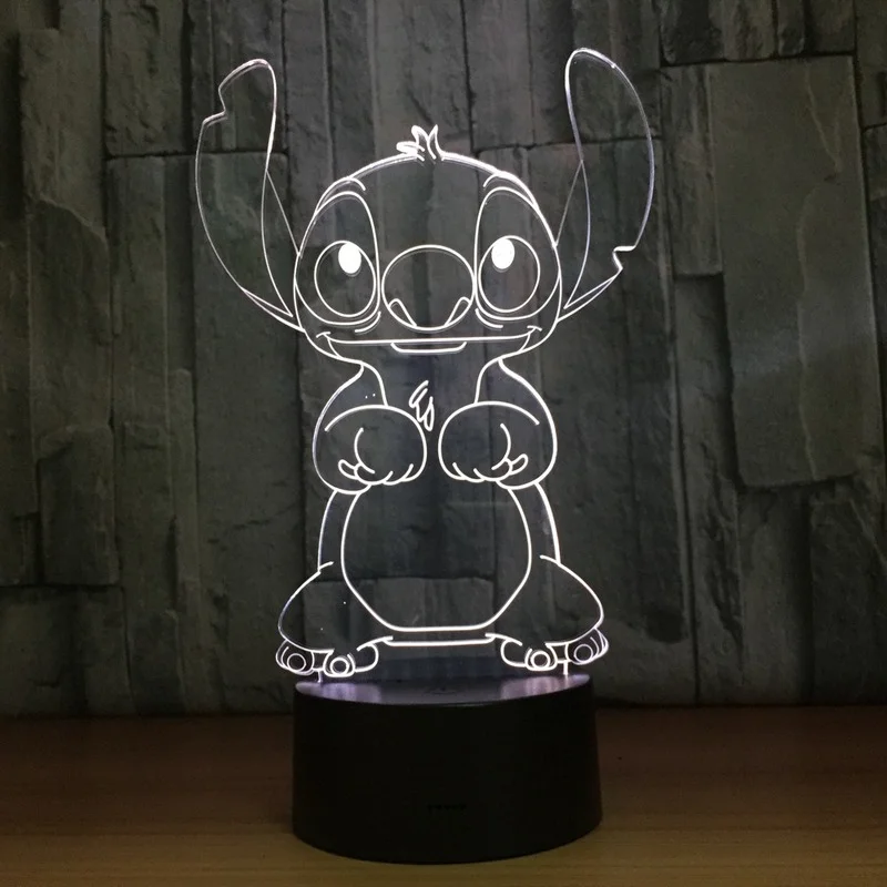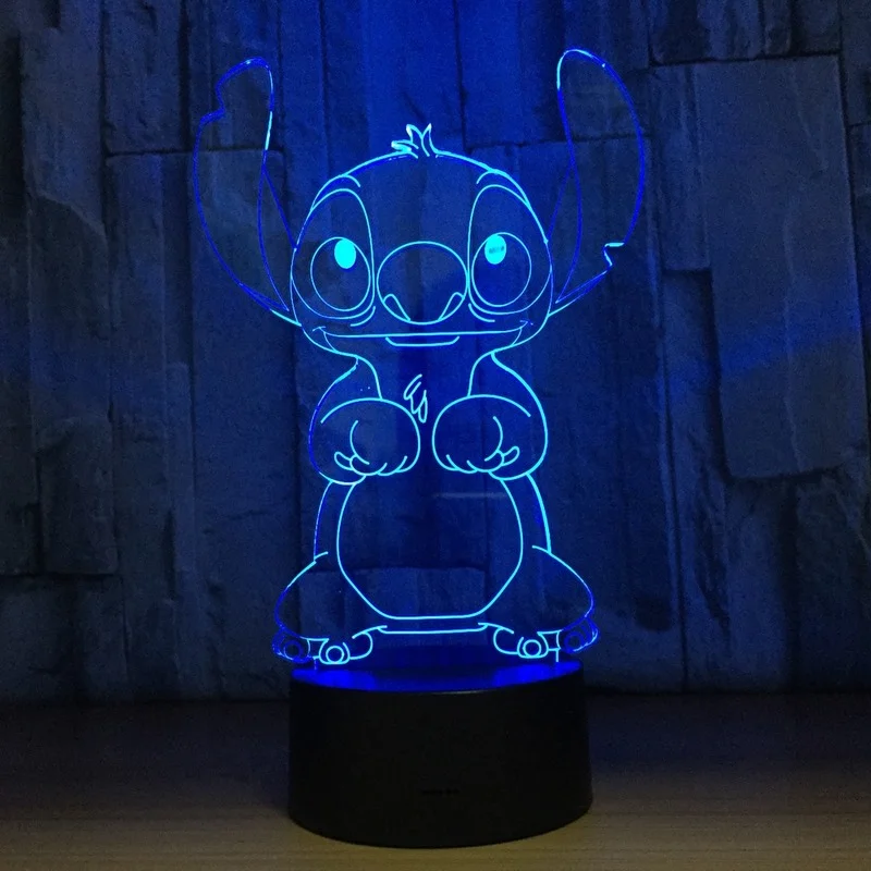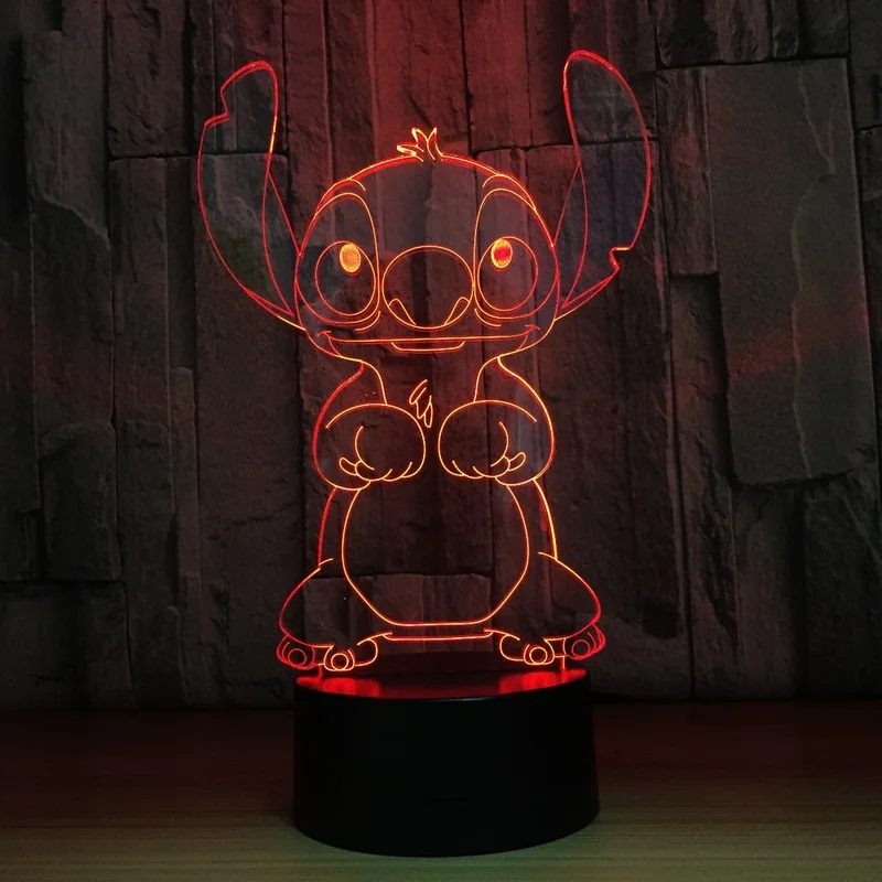 Светодиодный ночсветильник Лило Стич Disney, 3D лампа меняющая цвет, визуальная иллюзия, комнатное украшение для детей, подарок на день рождения и Рождество