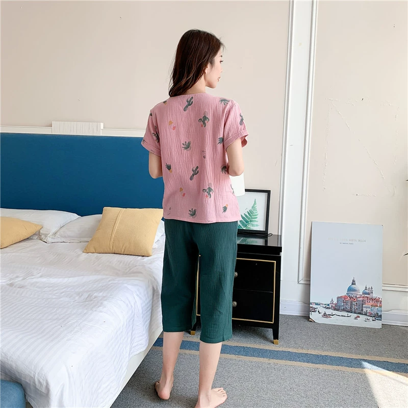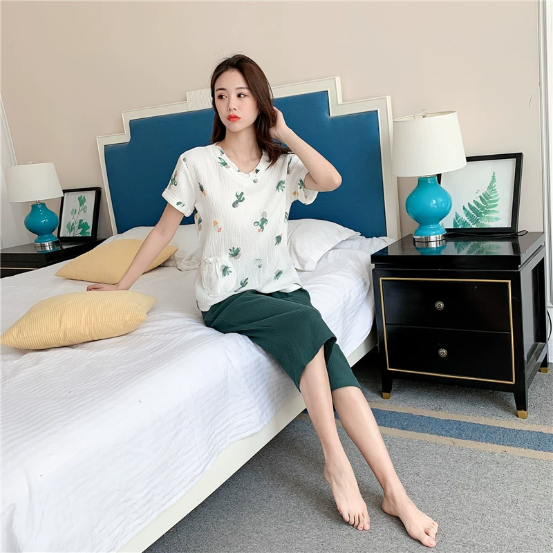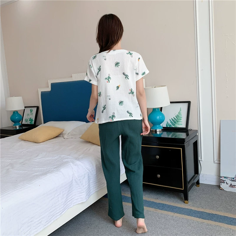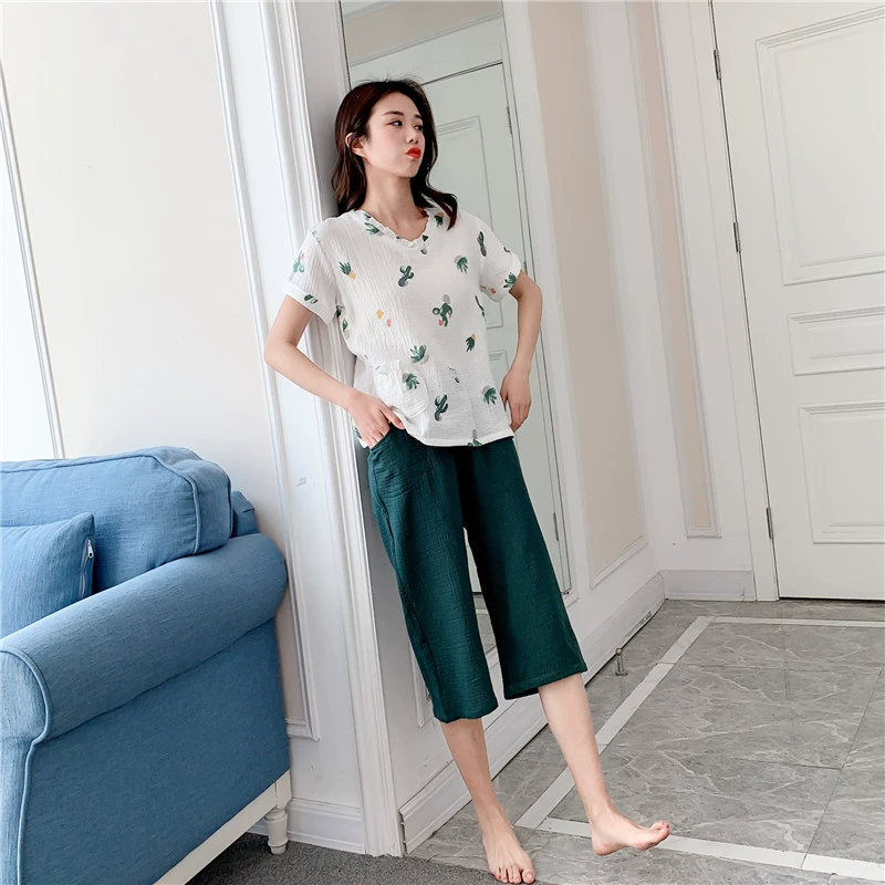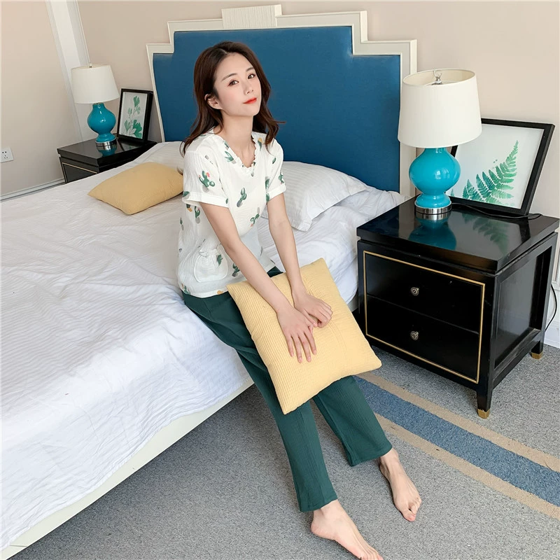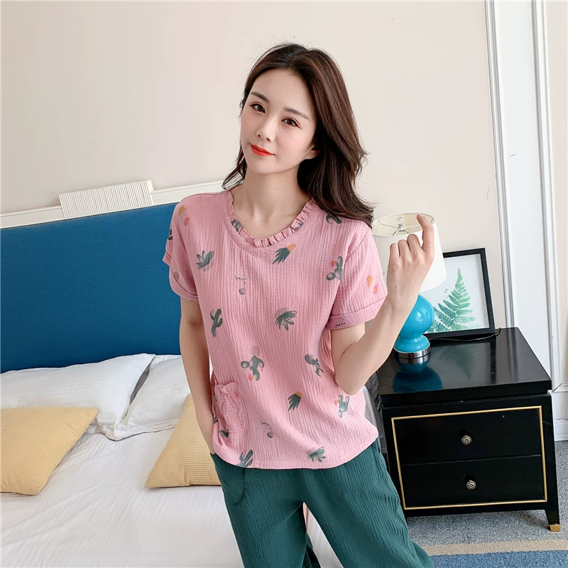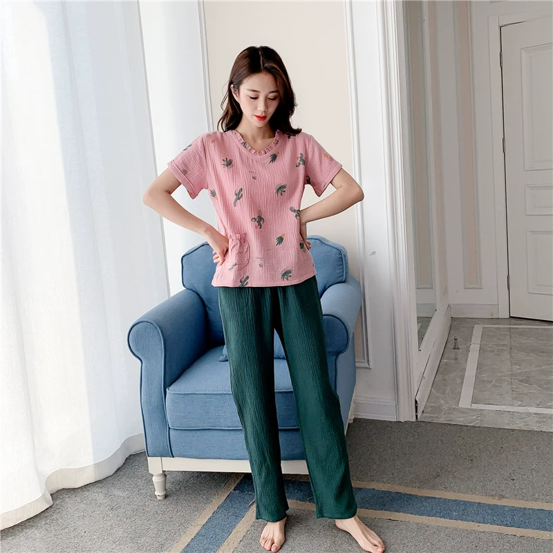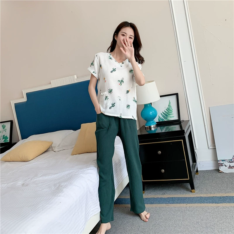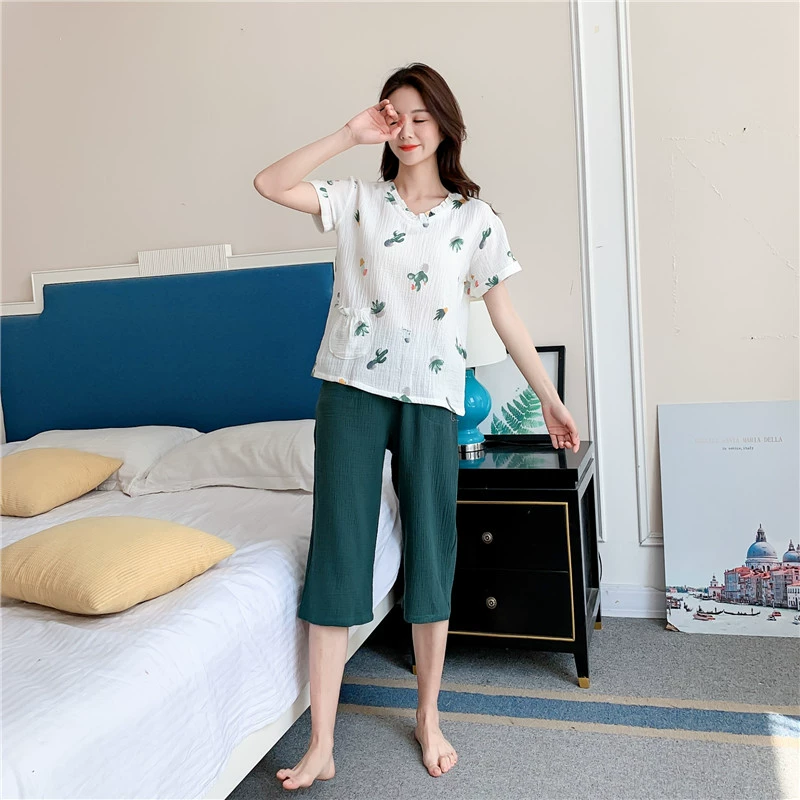 Пижама женская хлопковая, с коротким рукавом и длинными штанами