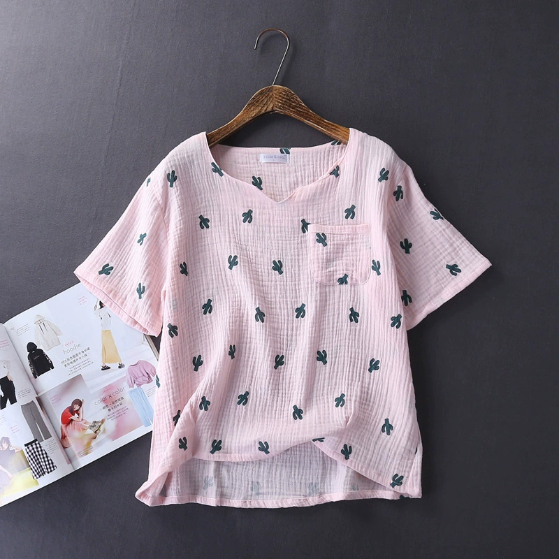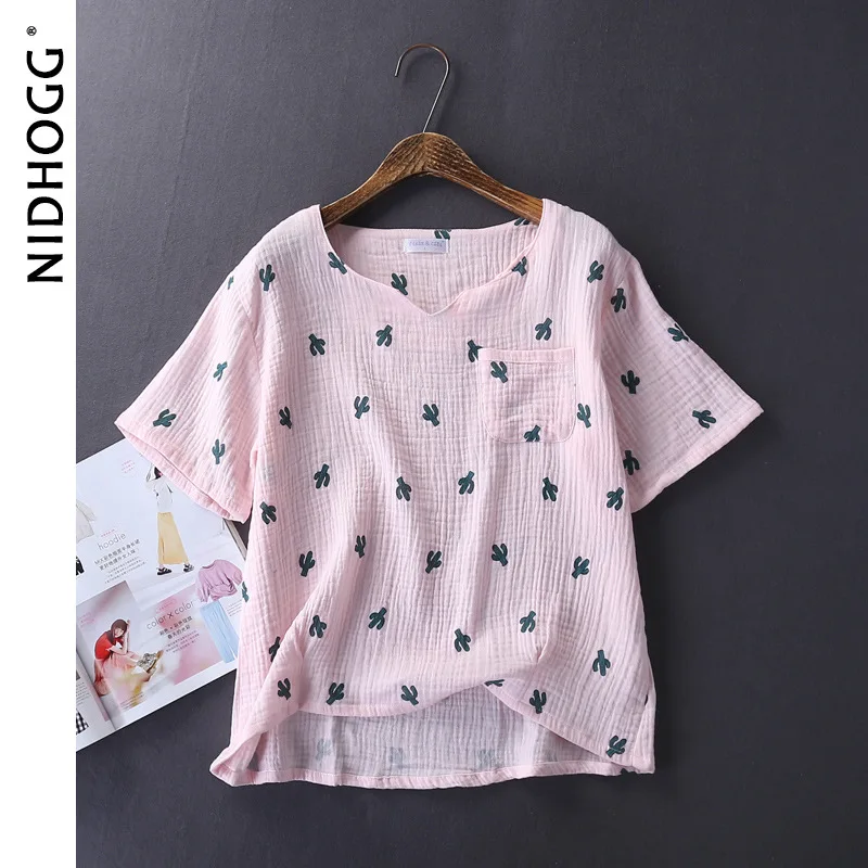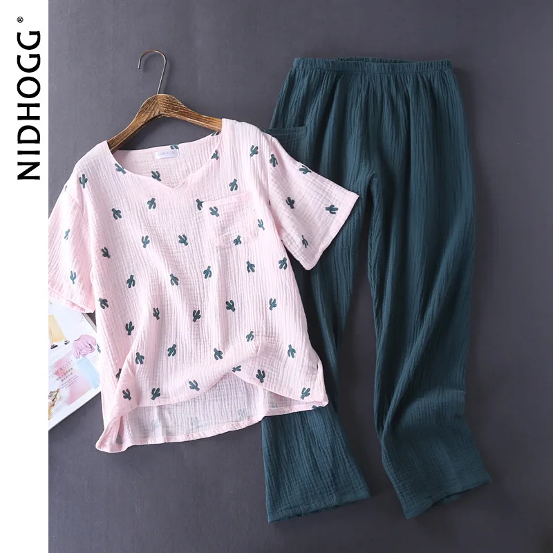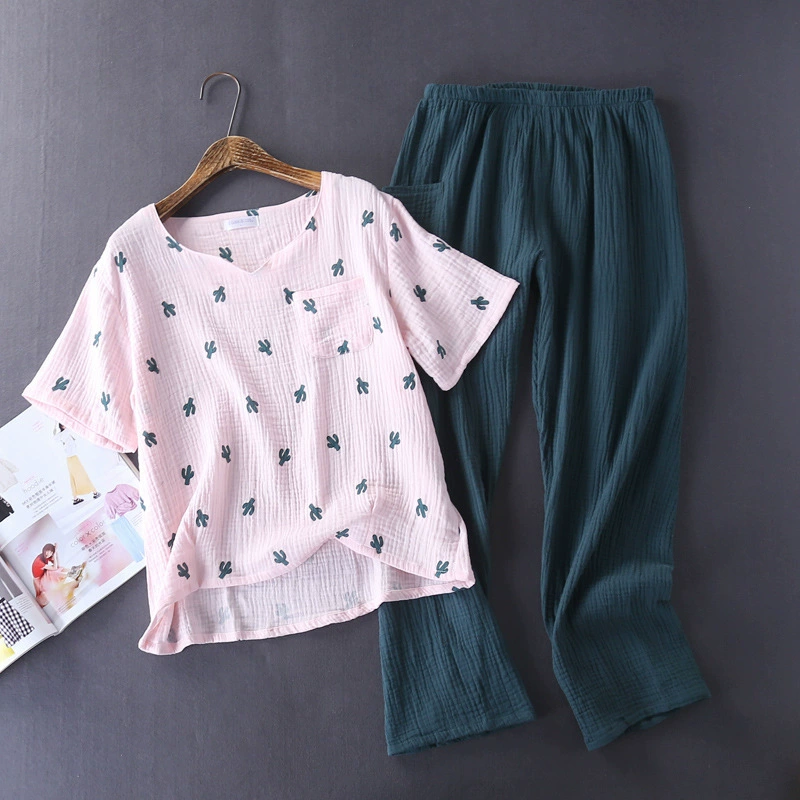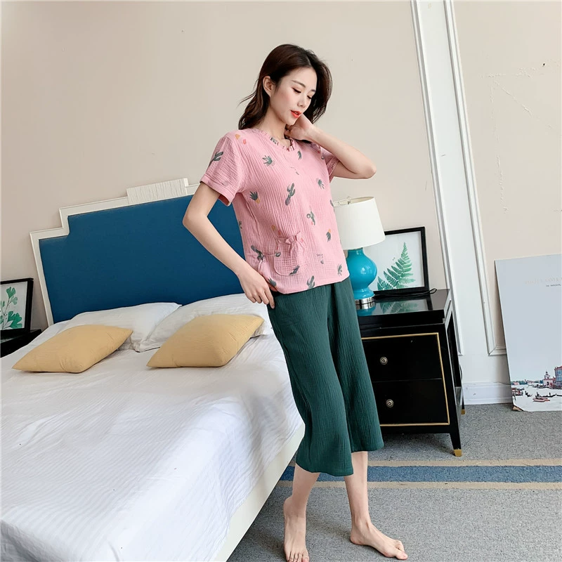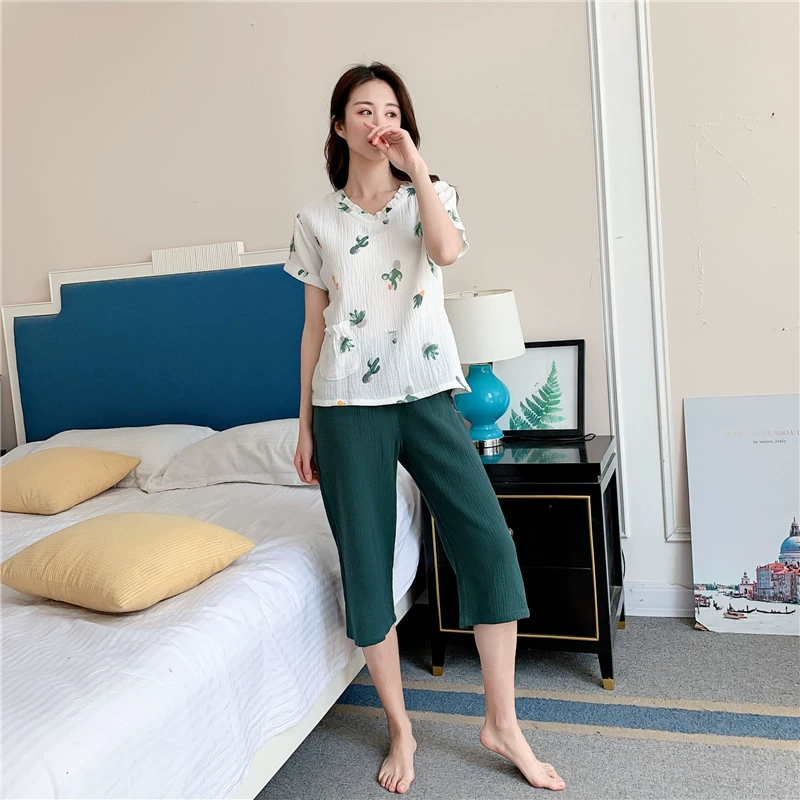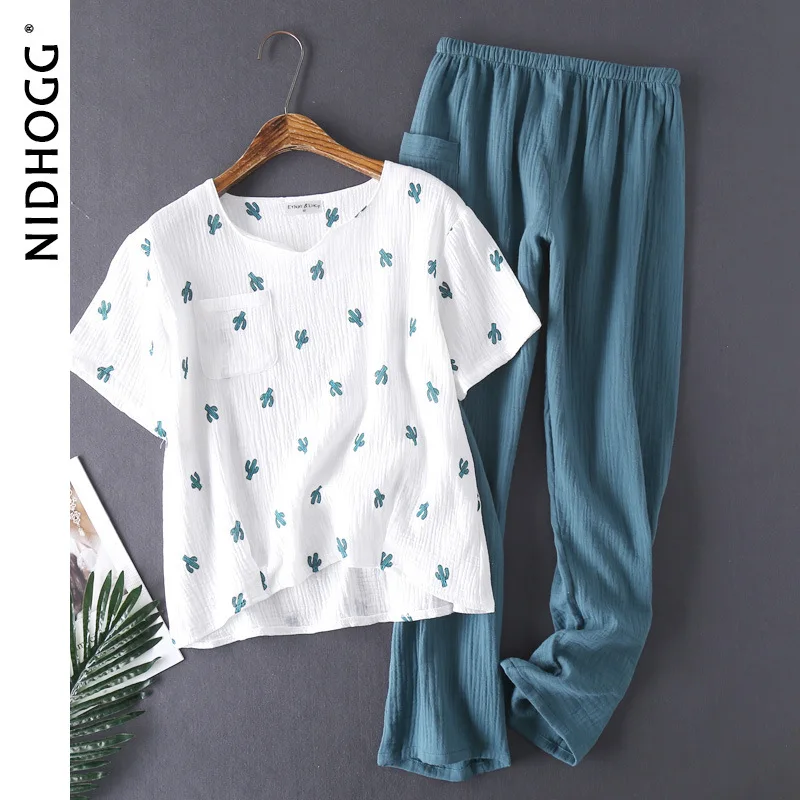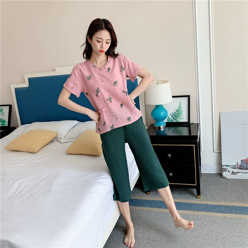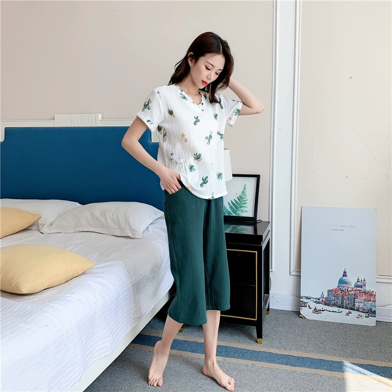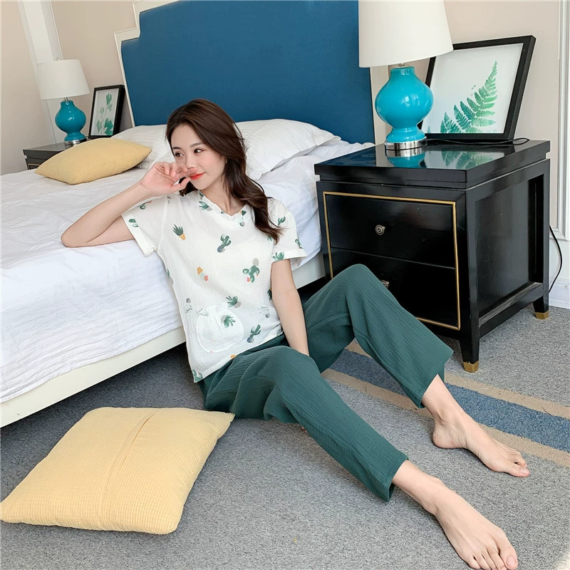 Пижама женская хлопковая, с коротким рукавом и длинными штанами