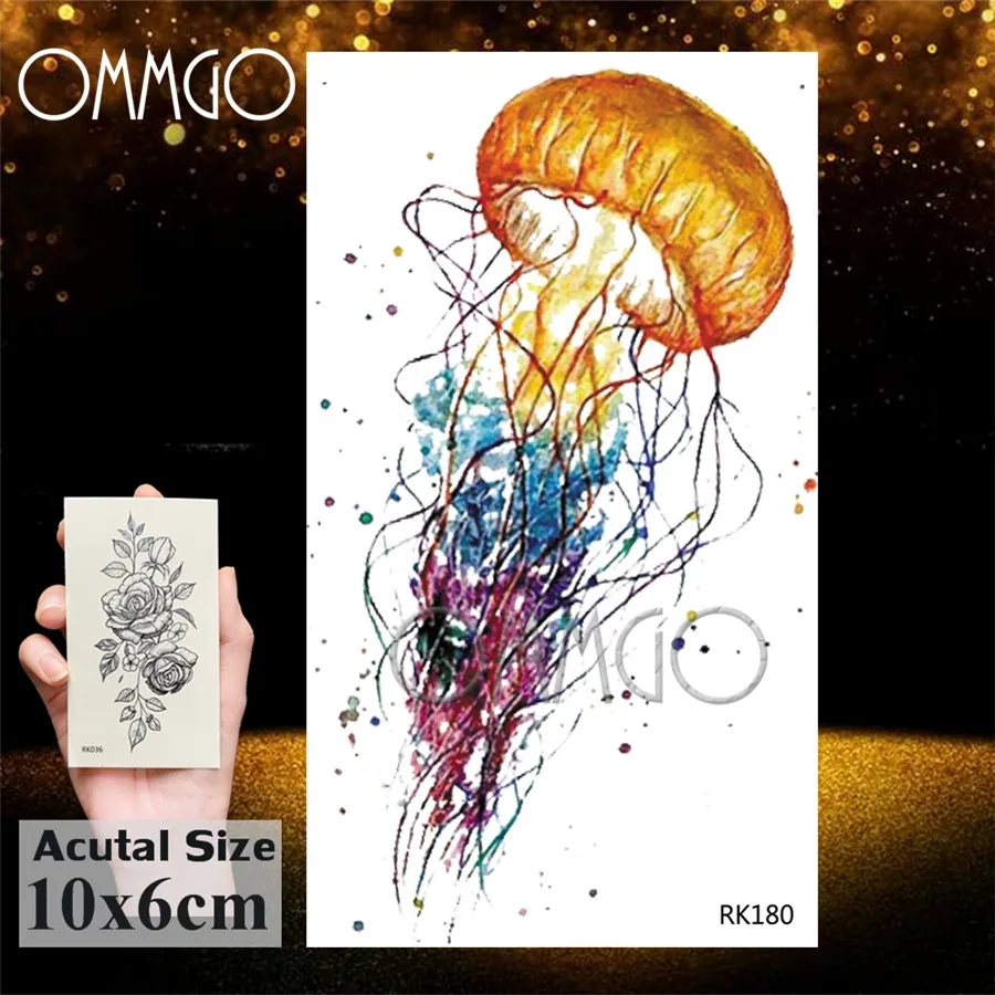 Временные татуировки OMMGO с треугольным львом хной тигром, наклейка, акварель, Кит, дельфин, тату, наклейки для мужчин, женский боди-арт, мужские татуировки для боди-арт