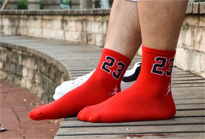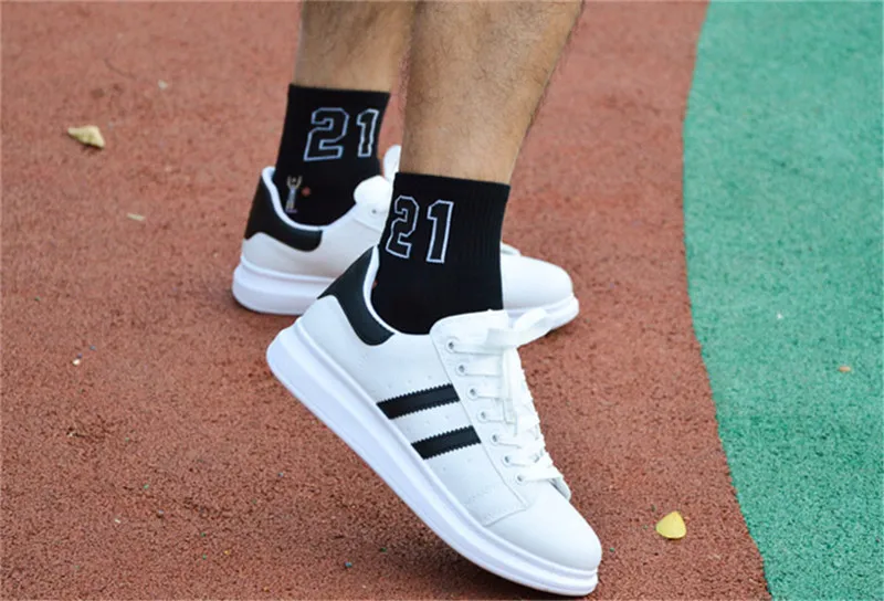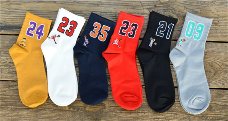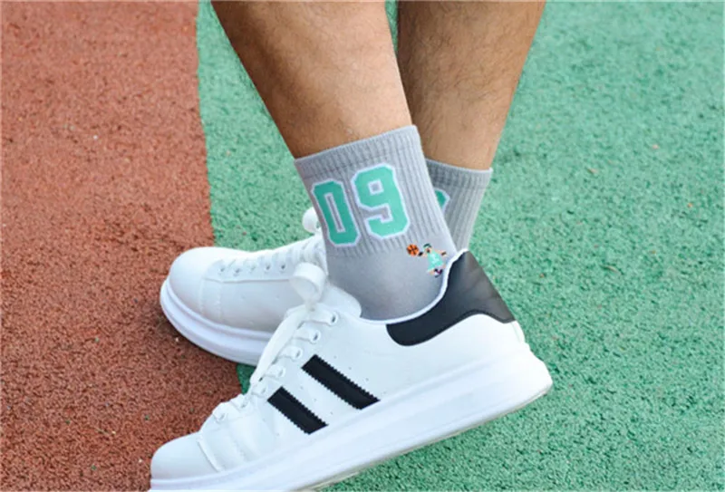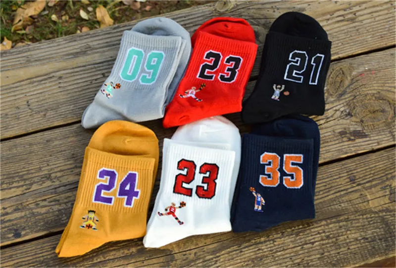 Носки мужские хлопковые однотонные, модные цифровые баскетбольные, 1 пара