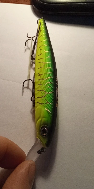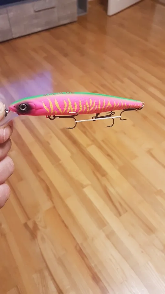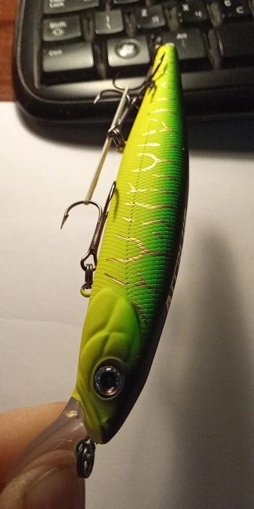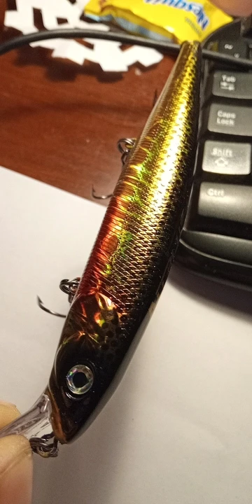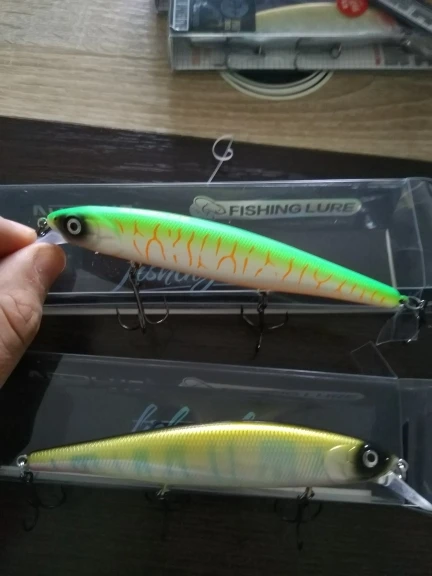 На вид хороший воблерок. Отличное качество покраски. Покраска глянец. Крючки острые. петли проклею на всякий случай. Если разловлю дополню. Доставка очень быстрая - две недели. Есть 115 от беркинга, но за год его так и не удалось разловить. Посмотрим как этот себя будет вести.
