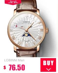 LOBINNI мужские часы, люксовый бренд, Moon Phase, автоматические ме...