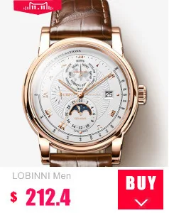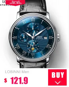 LOBINNI мужские часы люксовый бренд Moon Phase автоматические механ...