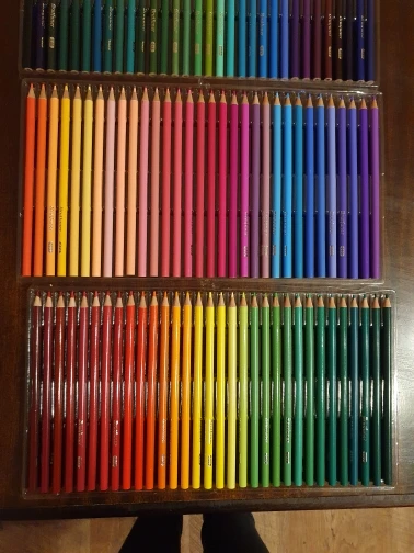 карандаши пожалуй даже через чур мягкие, струится быстродоставка около 2х недель. упаковка хорошая, поломаных нет. мягкие хорошие карандаши. за такую цену претензий нет, но отмечу недостатки. - количество некоторых цветов непропорционально иным цветам. очень много темно зеленых и синих, но светлосиних маловато. и так по некоторым цветам. - пожалуй даже через чур мягкие карандаши, быстро сотрутся. - не очень удобно выколупывать карандаши. лежат плотно. ни сверху, ни снизу зазора нет. нужно будет что-то придумывать, например отрезать верхнюю часть поддона.