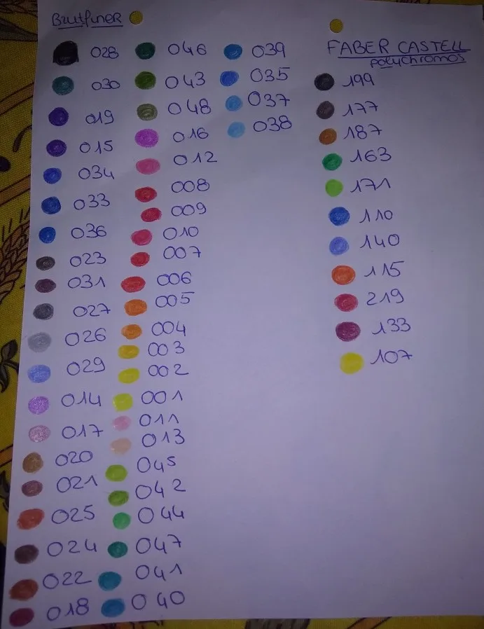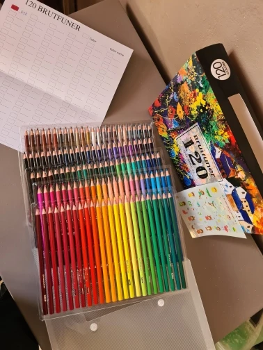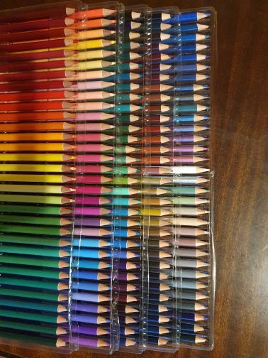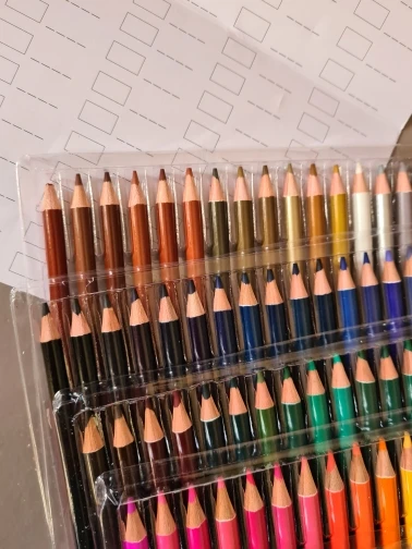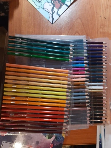 Очень доволен качеством, никаких сломанных карандашей в течение 1 месяца, Размер хорошо, нет проблем, я еще не использовал их, я только что сделал цветовую палитру по сравнению с полихромосом Фабера Кастель Они очень жидкие, они хорошие масляные цветные карандаши Есть небольшой жесткий пластиковый чехол для хранения. Только нижняя сторона, я бы сказал, что пластик или помещаются карандаши, это низкое качество, но это деталь.