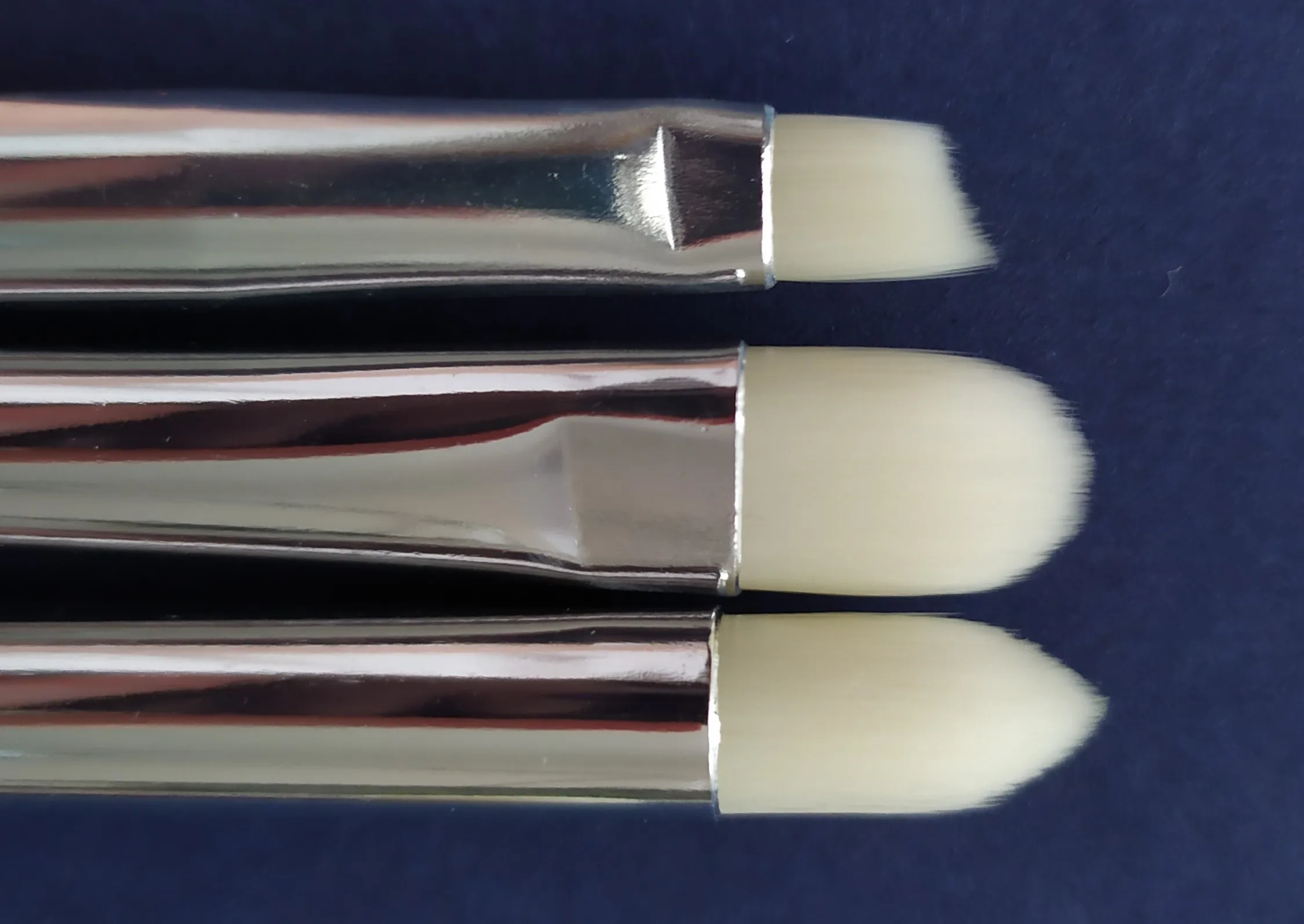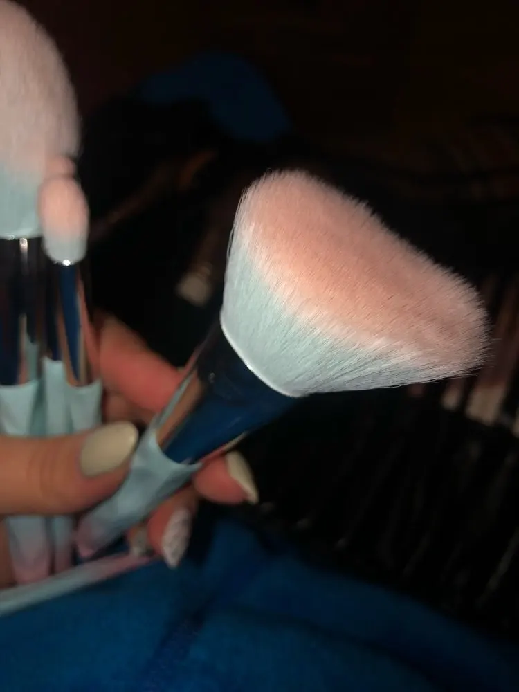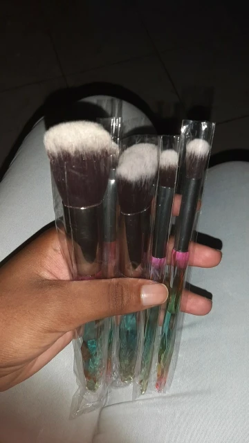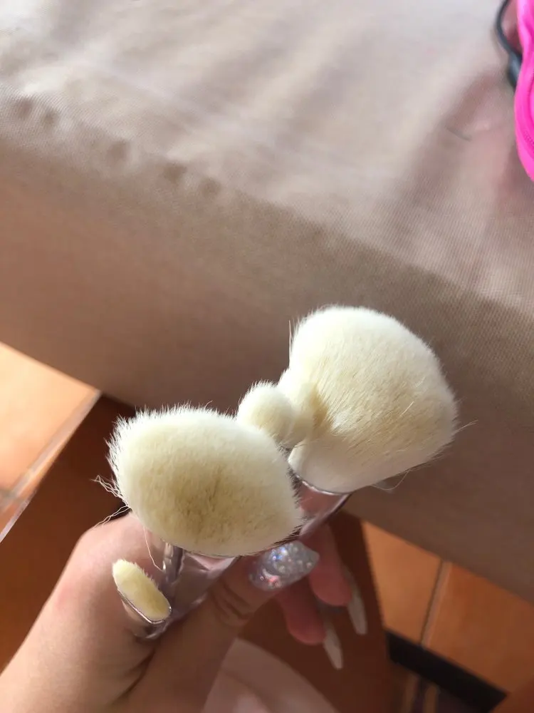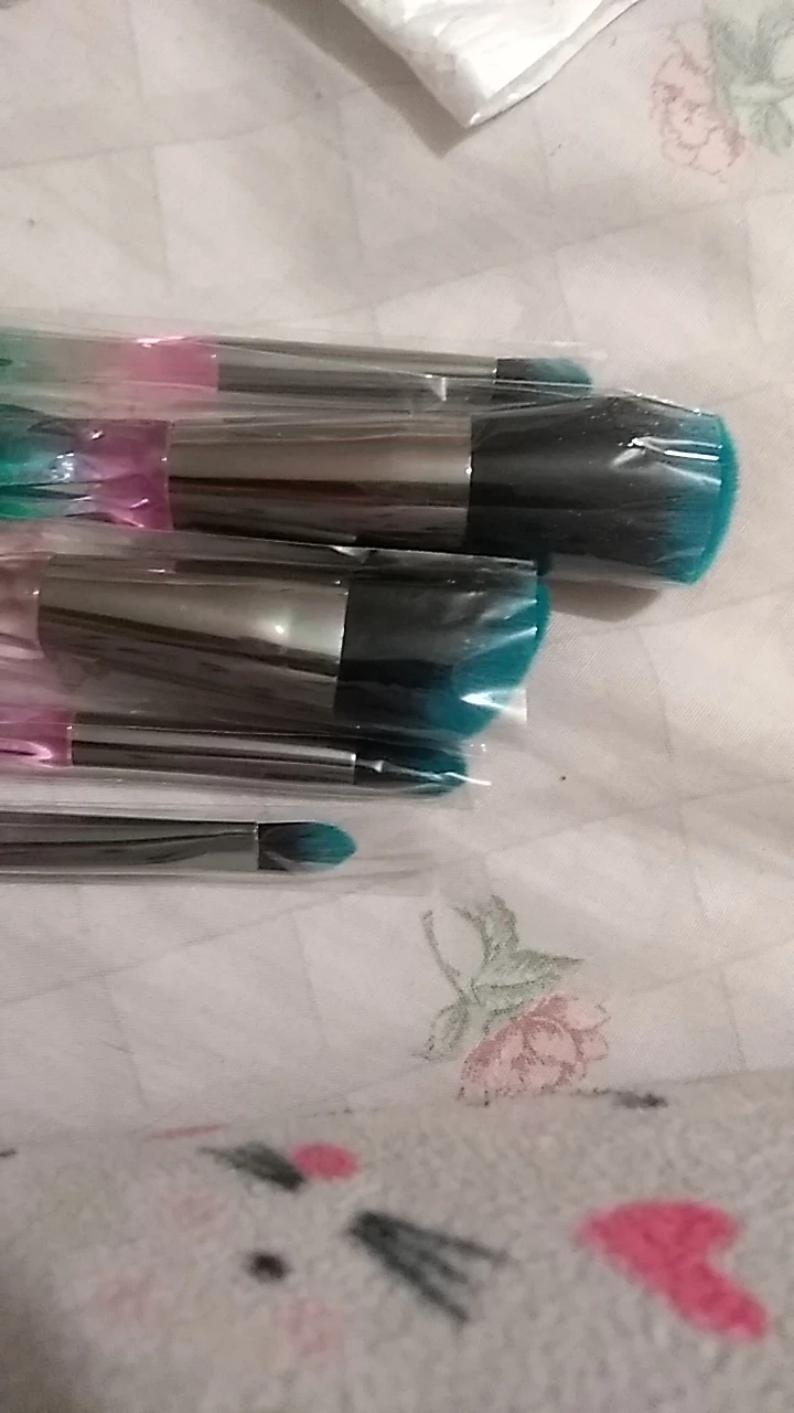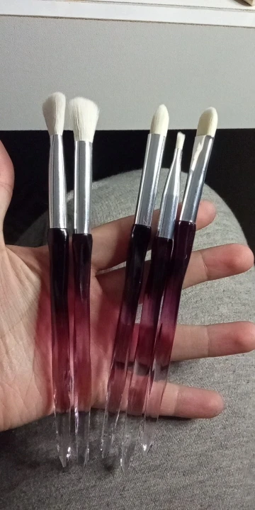 Хорошо, 2 кисти для растушевки идеальны, хорошие волосы, хорошая плотность. Но у других 3 кистей НЕТ, у них слишком много волос и они мягкие, но так как это так много волос, они жесткие. И поэтому они не обслуживают много, но все еще они красивые, они выглядят и чувствуют хорошее качество