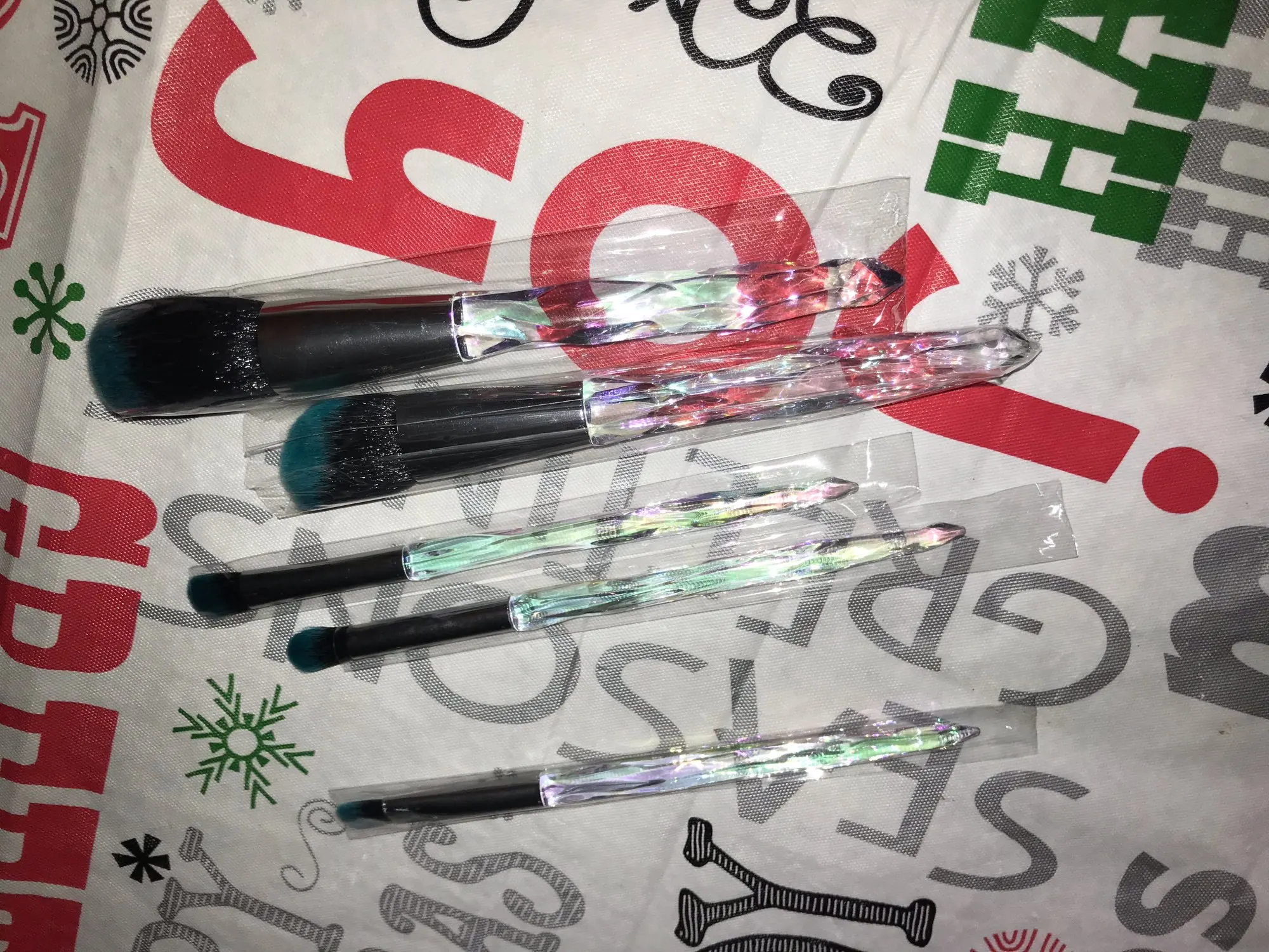 Я вполне доволен своей покупкой. Товары прибыли в хорошем состоянии и даже на несколько дней раньше, чем ожидалось (в Испанию). Я думаю, что соотношение цены и качества продукта является справедливым. Набор кистей для теней для век был достаточно хорошо упакован. Они были индивидуально упакованы с пластиковыми крышками, а затем помещены в другую пластиковую крышку. Все это было упаковано в пластиковый конверт. Кисти соответствуют описанию продавца относительно их формы и цвета. Однако (если я не понимаю описание), все они сделаны из синтетических щетин. На мой взгляд, три кисти сделаны из синтетической щетиной и две из козьей шерсти. Все щетинки мягкие (хотя натуральные волосы гораздо мягче на ощупь), но порезы в некоторых кистях не очень хороши. Щетинки, по всей видимости, хорошо крепятся к ободку (они до сих пор не теряют щетинки). Однако один из ободков немного свободный от Пластиковой ручки.