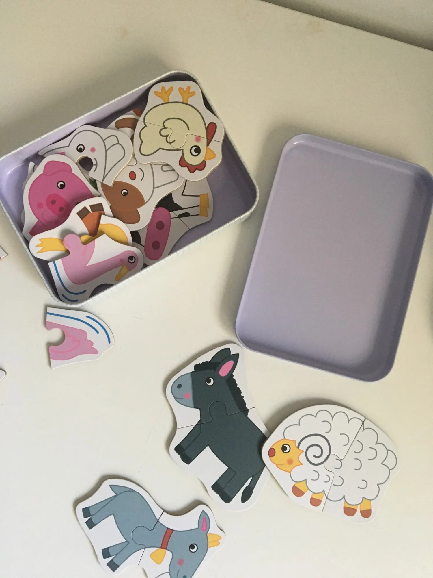 заказала 3 набора .пришли быстро. отлично выполнены - коробочки металлические, пазлы выполнены из жёсткого картона, картинки яркие. для ребёнка очень подходящие. Спасибо большое продавцу. Рекомендую для покупки и для развития детей.