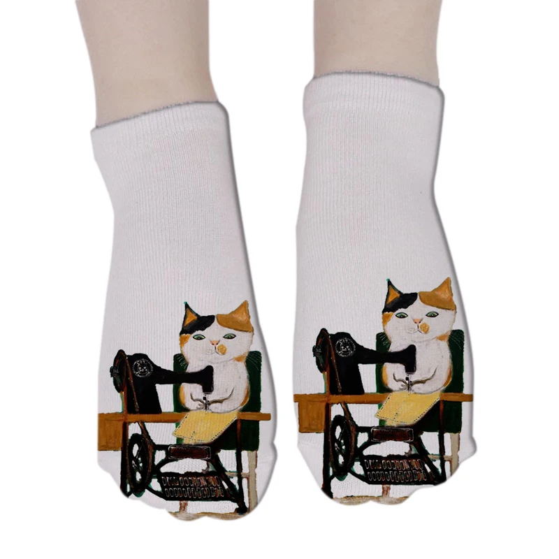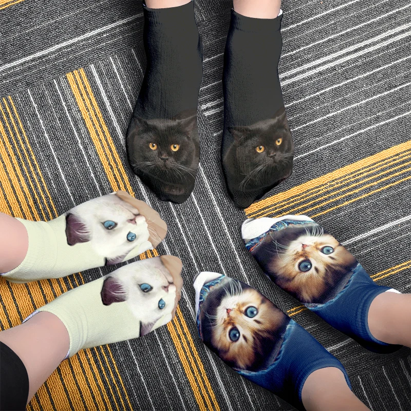 Новинка, забавные носки унисекс в стиле Харадзюку С 3D-принтом котят, милые красочные разноцветные счастливые Мультяшные женские фотоноски с разными лицами кошки