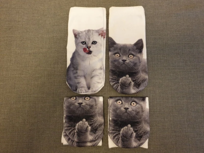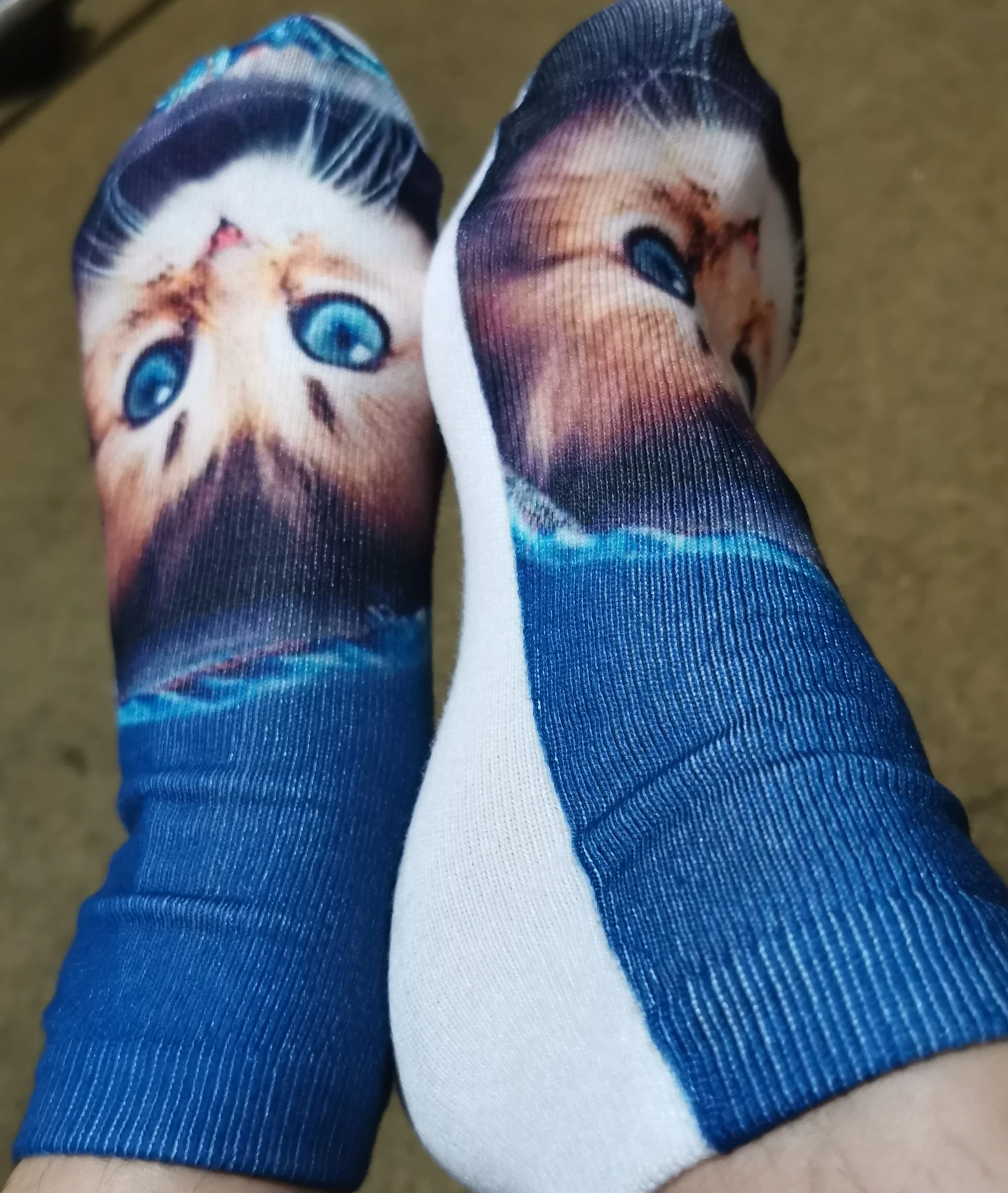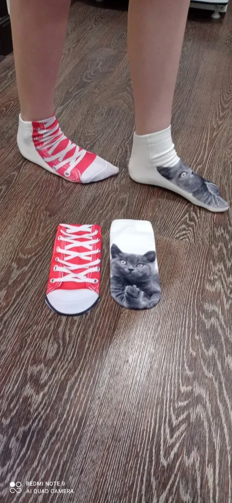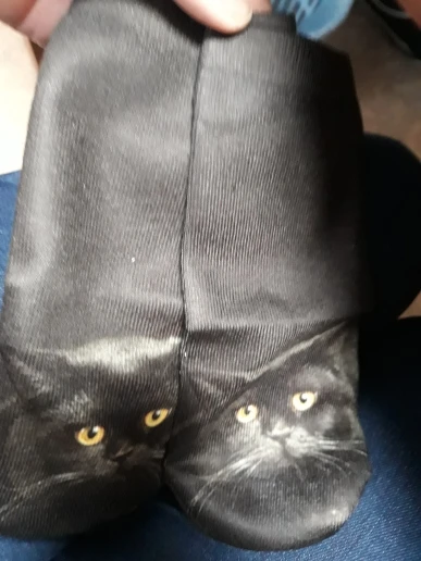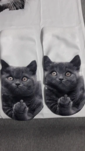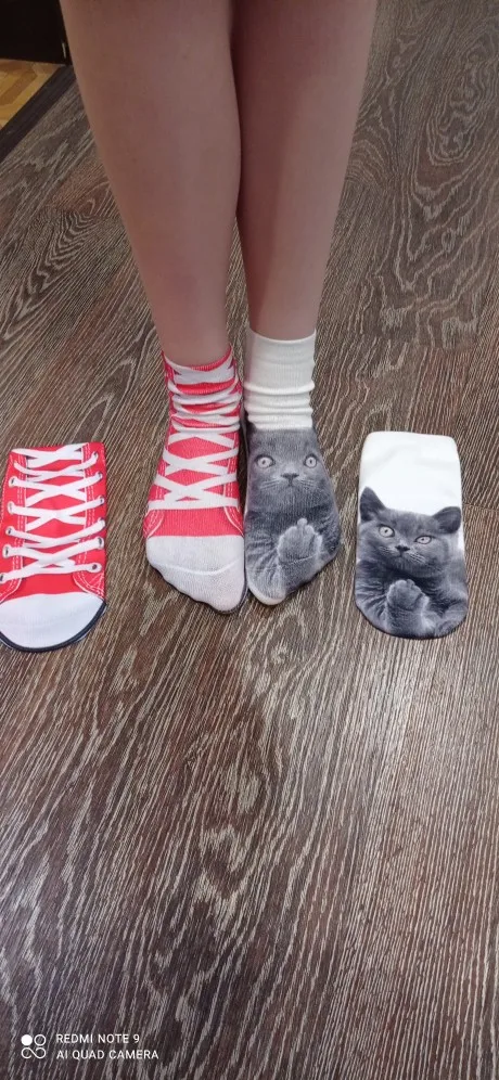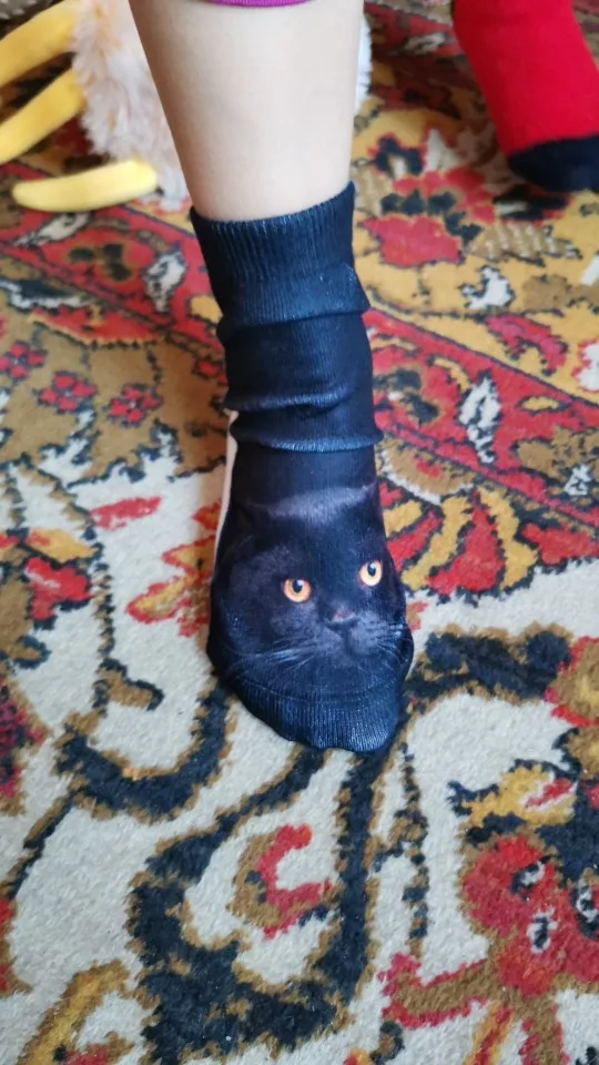 Носки мягкие прикольные приятные ноге искусственные но это их плюс пришли быстро киски просто супер. Продавцу уважуха советую всем этот товар.
