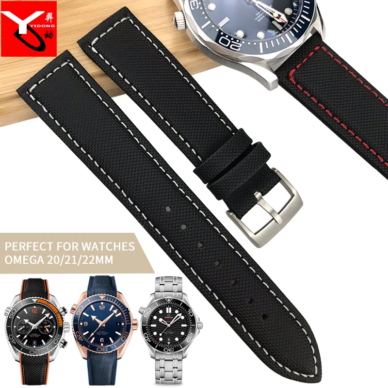 Ремешок резиновый силиконовый из нержавеющей стали для мужских часов, браслет с кожаным ремешком для Omega Watch Seamaster, 19 мм 20 мм 21 мм 22 мм