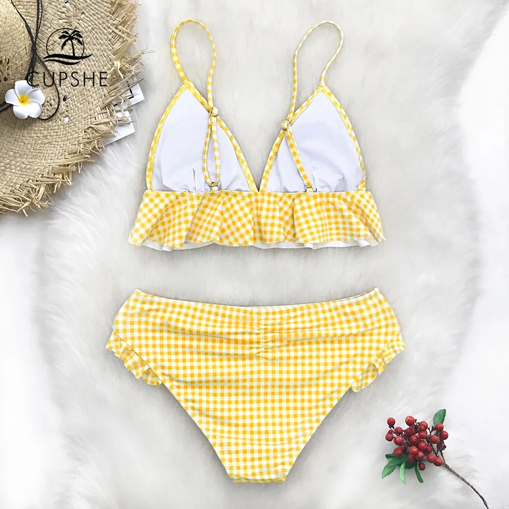Женский купальник CUPSHE, бикини с высокой талией в желтой и черной...