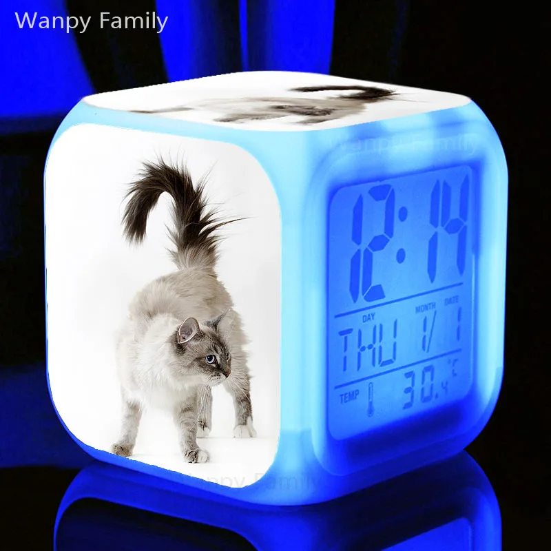 Тряпичная кукла для домашних животных кошки будильник светодиодный 7 цветов Светящиеся цифровые часы-будильник для детей фестиваль подарок Изменение цвета сенсорный световые часы