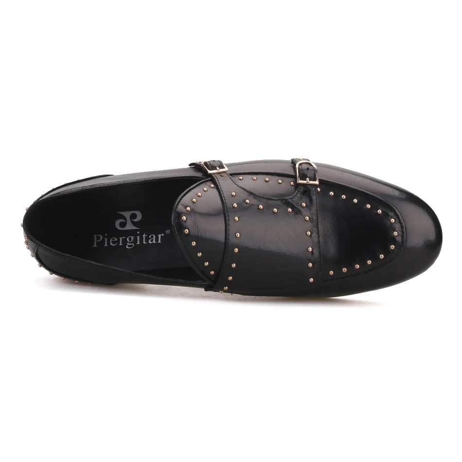 Мужская обувь Piergitar, черная кожаная обувь в тон с шипами одуван...