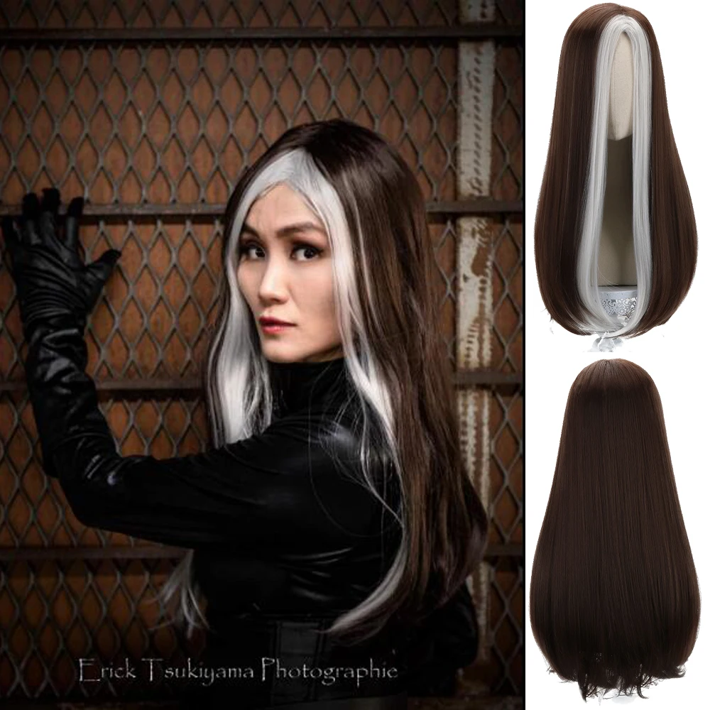 Free Beauty длинные прямые синтетические серебристо-коричневые 24 дюйма Косплей Rogue парик для женщин и девочек аниме парики для вечевечерние костюм Хэллоуин