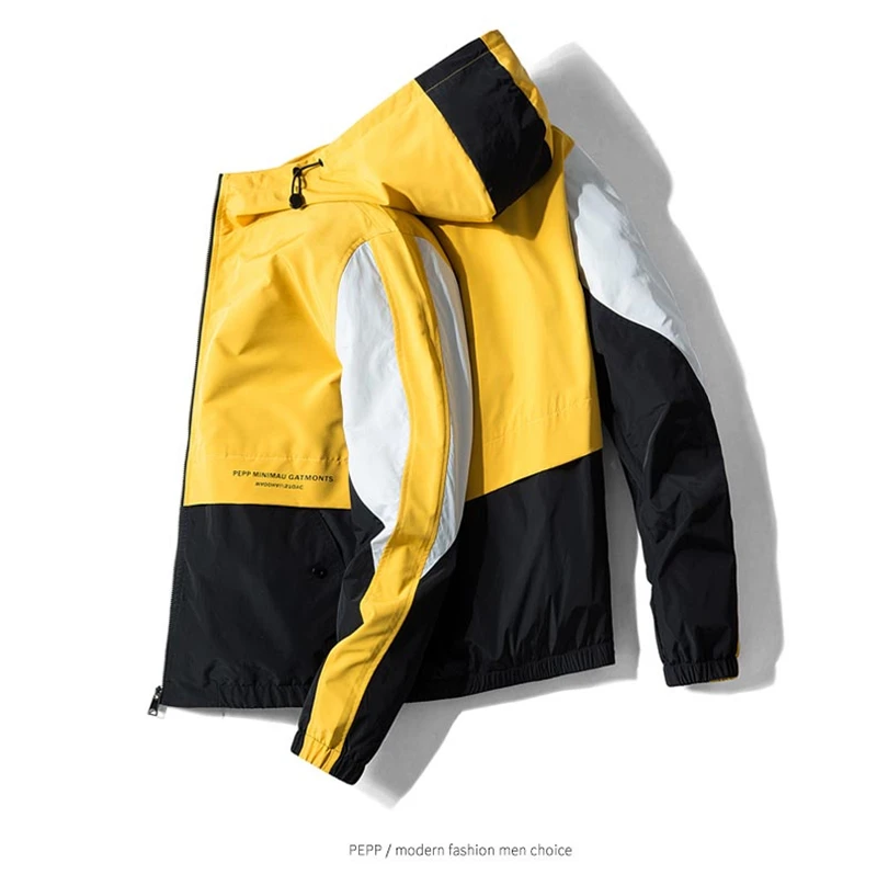 Ветровка мужская с капюшоном, тонкая приталенная куртка-бомбер в стиле пэчворк, повседневная верхняя одежда, весна-осень