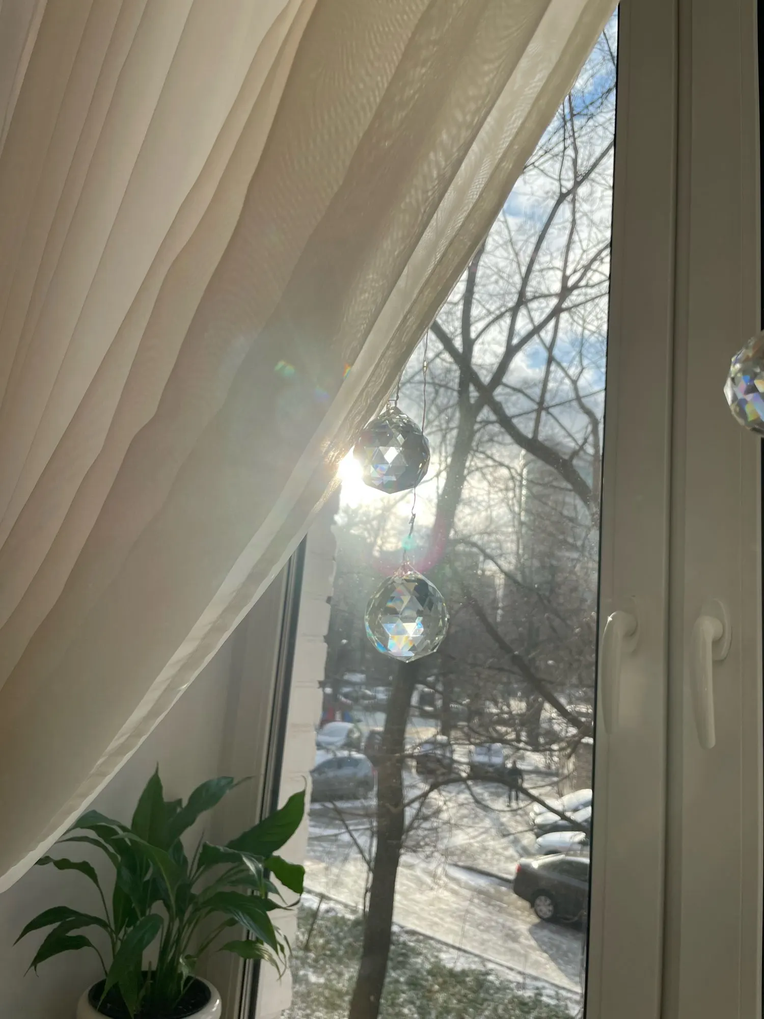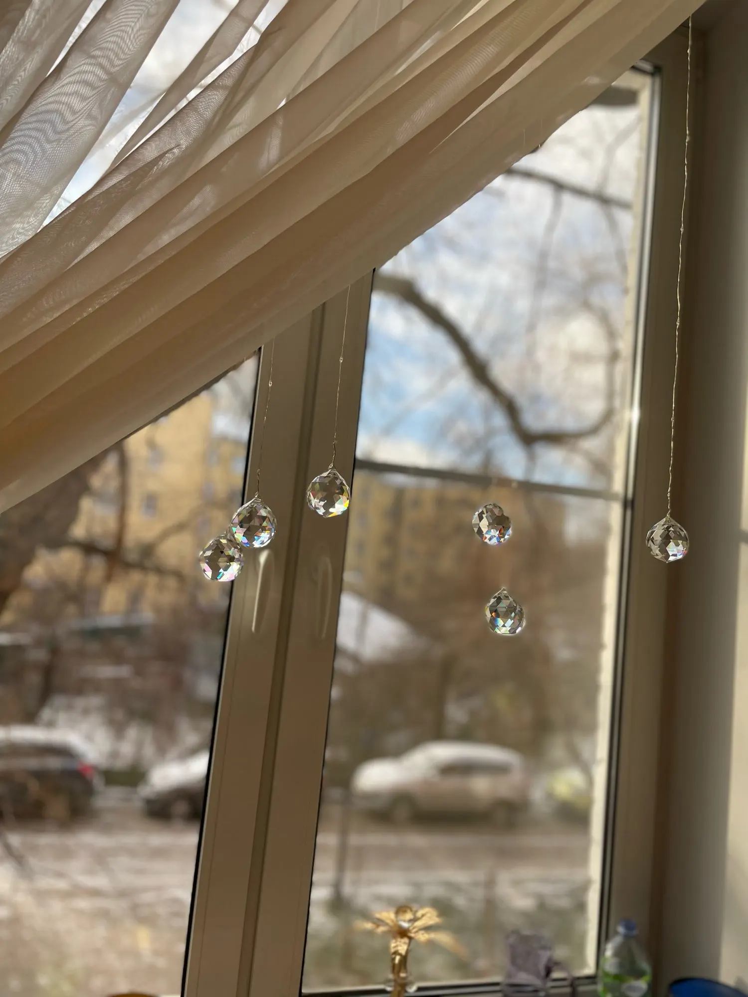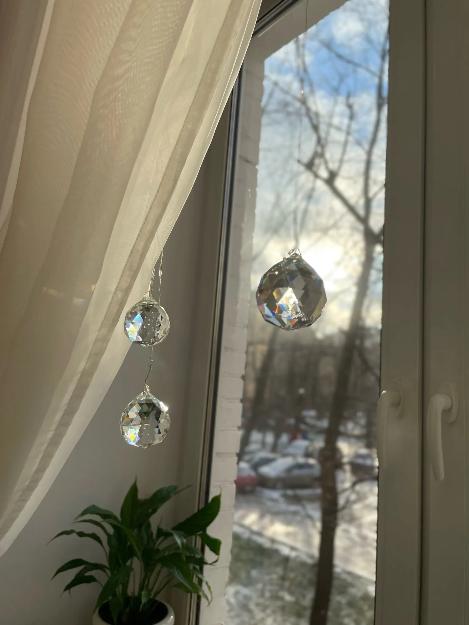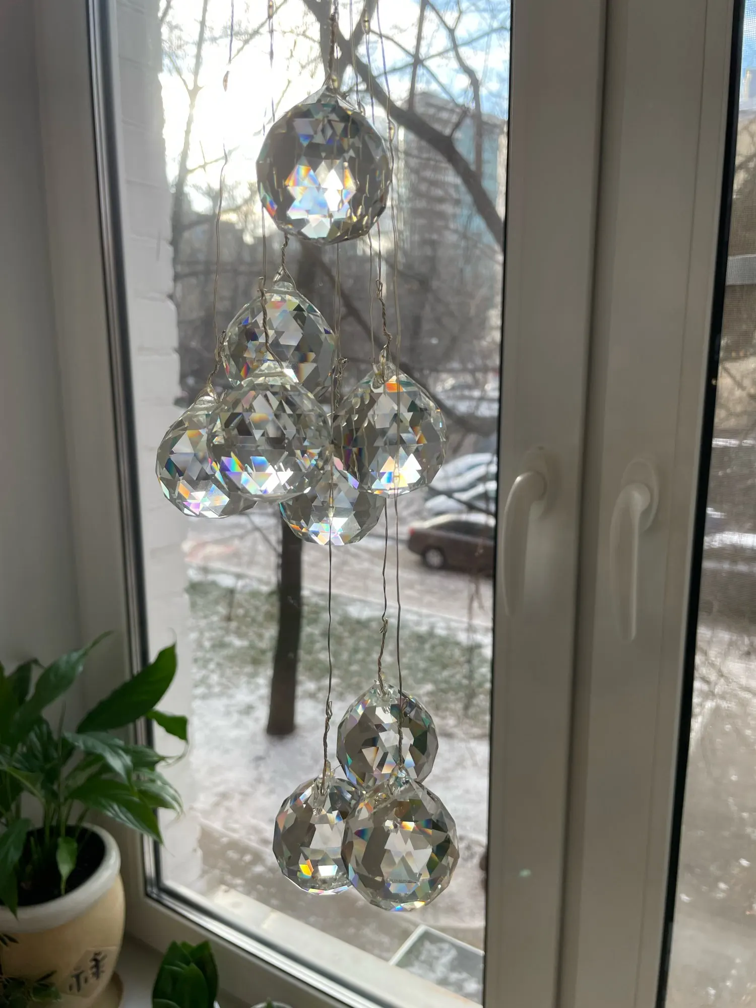 Стеклянные шарики, очень красиво играют на солнце. Упакованы качественно, пришли все целые. Дети в восторге от множества маленьких радуг по всей комнате. Доставка супер быстрая. Продавца рекомендую.
