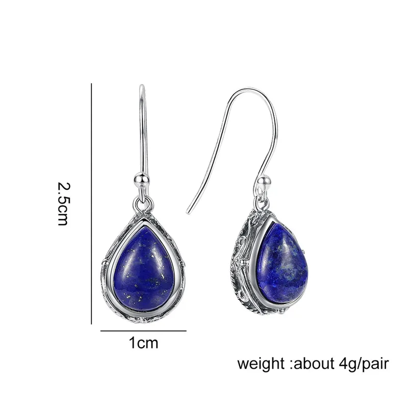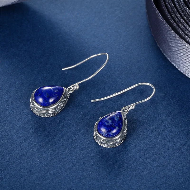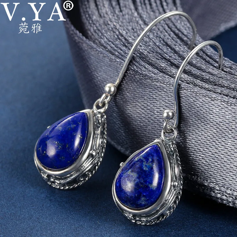 Женские серьги в виде капли воды V.YA, серьги из натурального лазурита из серебра 925 пробы