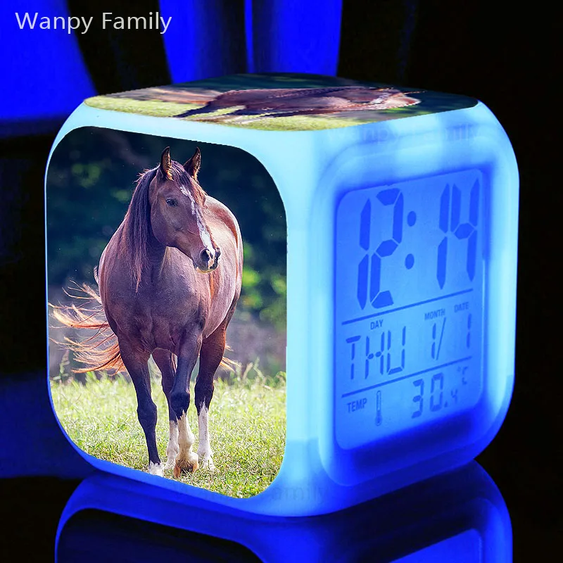 Будильник с изображением лошади, 7 цветов, светящиеся светодиодные ...