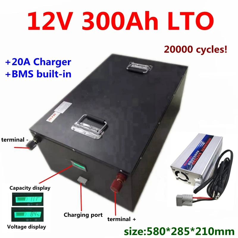 1. 12V 300Ah аккумулятор лто, 150A BMSВстроенный (можно настроить ток разряда)