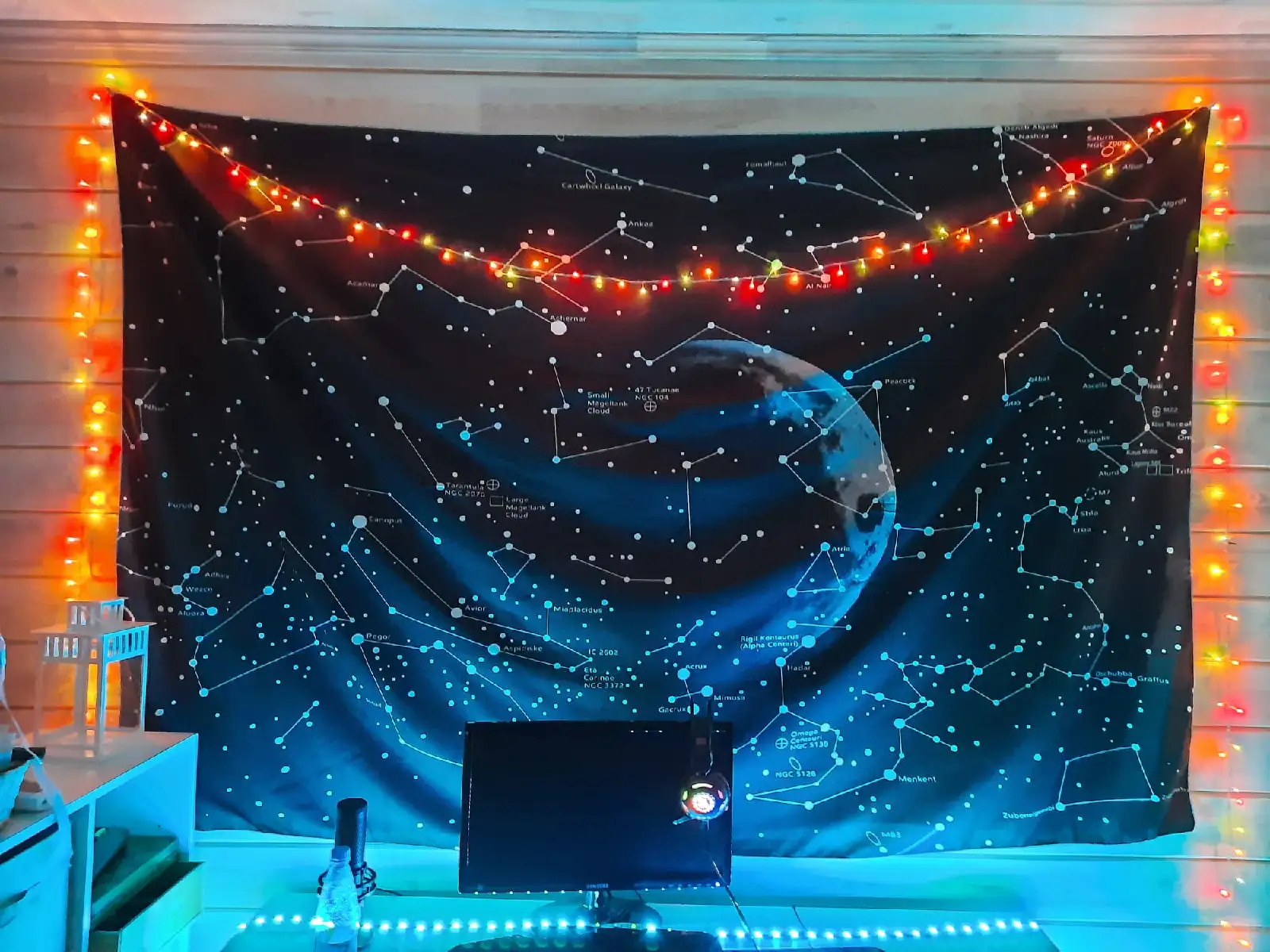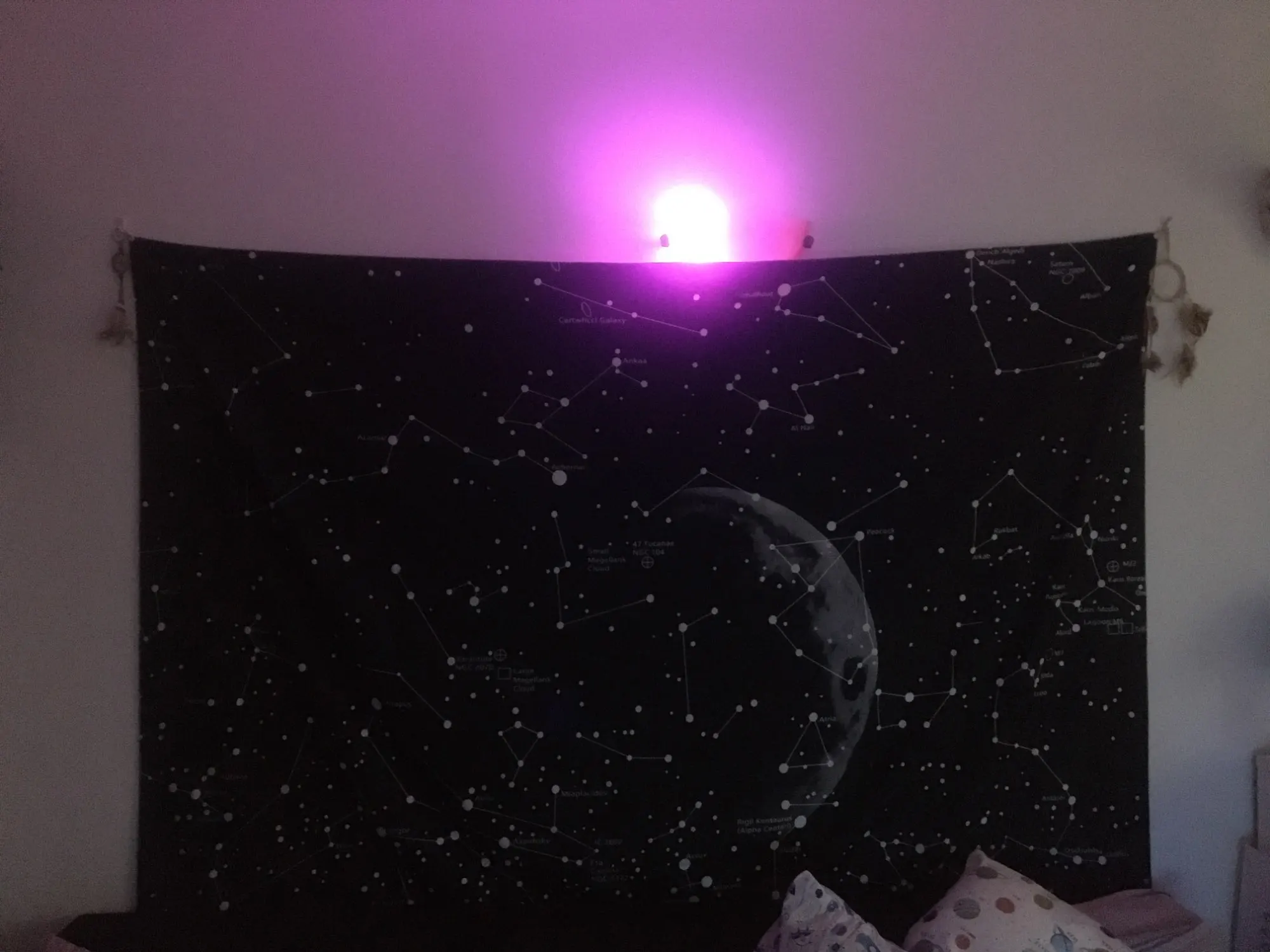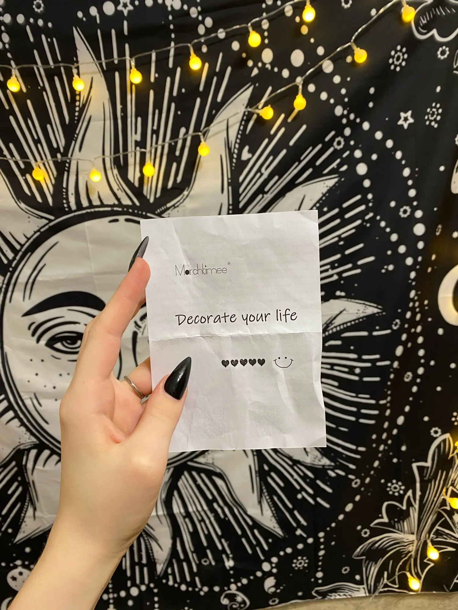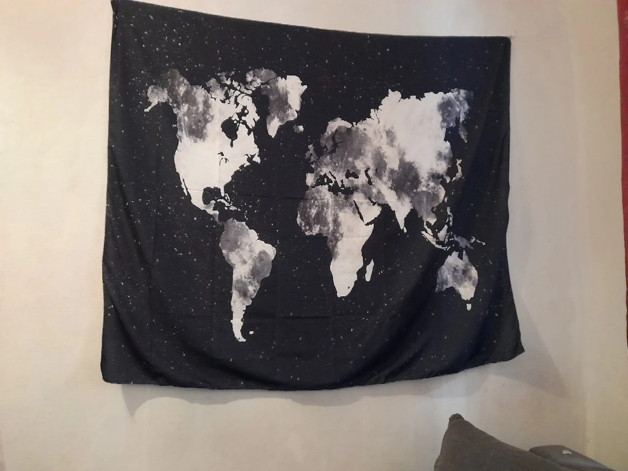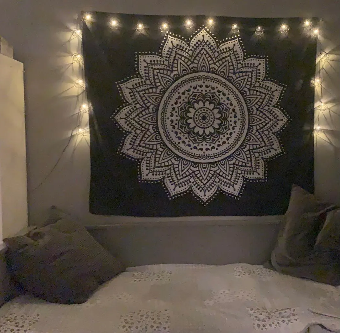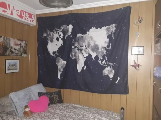 Гобелен хорошо напечатан, он поставляется с системой, чтобы прикрепить его к стене, это идеально! Это было просто немного долго, чтобы приехать