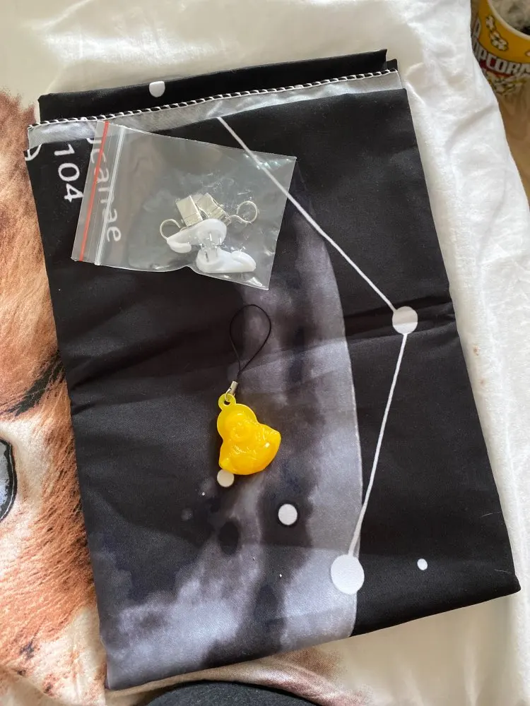 Гобелен не такой тёмный как на фото. В принципе, я даже рада этому. Так как сомневалась в цвете, а фото именно этого гобелена мало. Но для кого-то это может быть принципиально важный момент. Может лучше добавить в профиль более реалистичные фотографии? Сам гобелен приятный и большой. Побыстрее хочется повесить его на стену. Крепежи в наборе. А ещё милый брелок!