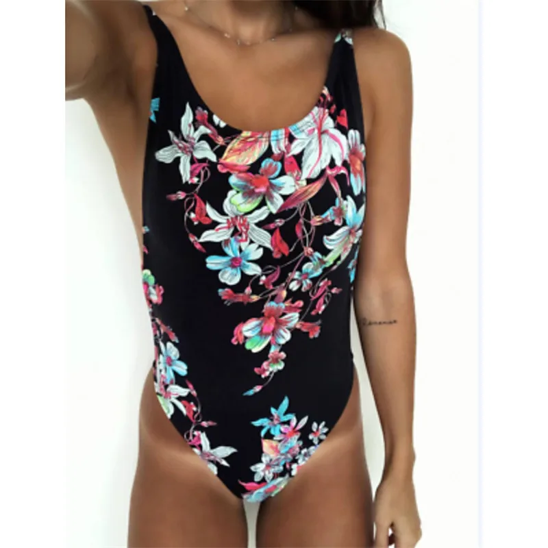 Женский Цельный купальник с цветочным принтом, с открытой спиной, 2019