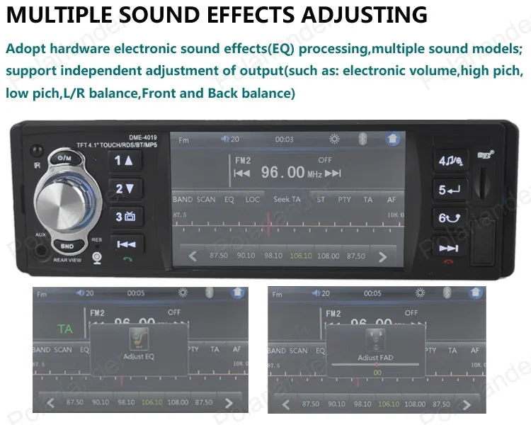 3. Поддержка Bluetooth и ручного вызова, fm-радио, USB, tf-карта AUX IN, пульт дистанционного управления и линия парковки (не включает резервную камеру)
