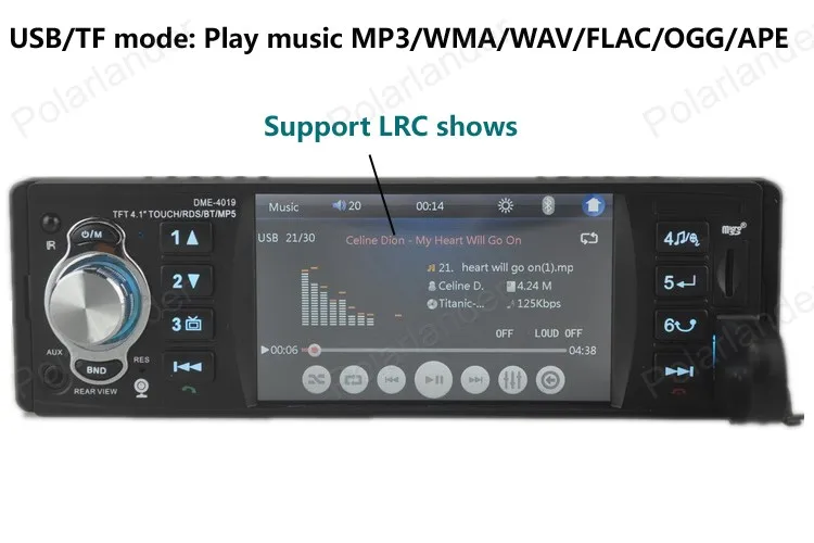 1. 4,1 дюймов TFT 800x480 сенсорный экран-Экран, высокое разрешение, Поддержка 1080P Veido формат (пикселей 1920X1080)