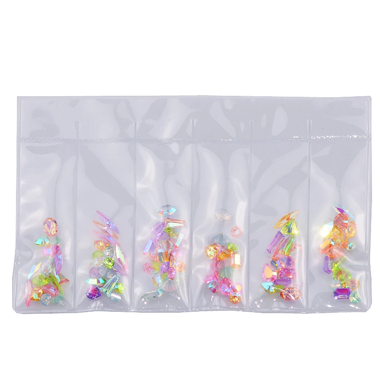 Посылка шла 35 дней. Продавец отправил товар без задержки.Посылка отслеживалась до момента отправления в страну назначения. Пришла без повреждений, все отлично упаковано. Качество отличное. Точное соответствие с описанием и фото продавца. Стразы стеклянные разнообразной формы овальные,сердечки,треугольники,квадратики,каплевидные, удлиненные. В каждой ячейке от 9 до 12 шт. Всего 6 ячеек. Очень-очень красивые, переливаются всеми цветами радуги так, что камера не передает в полном объеме, на ногтях смотрятся супер, в носке отлично. Я в восторге! Товаром очень довольна, буду заказывать еще. Спасибо продавцу за прекрасное обслуживание. Очень рекомендую товар и продавца.