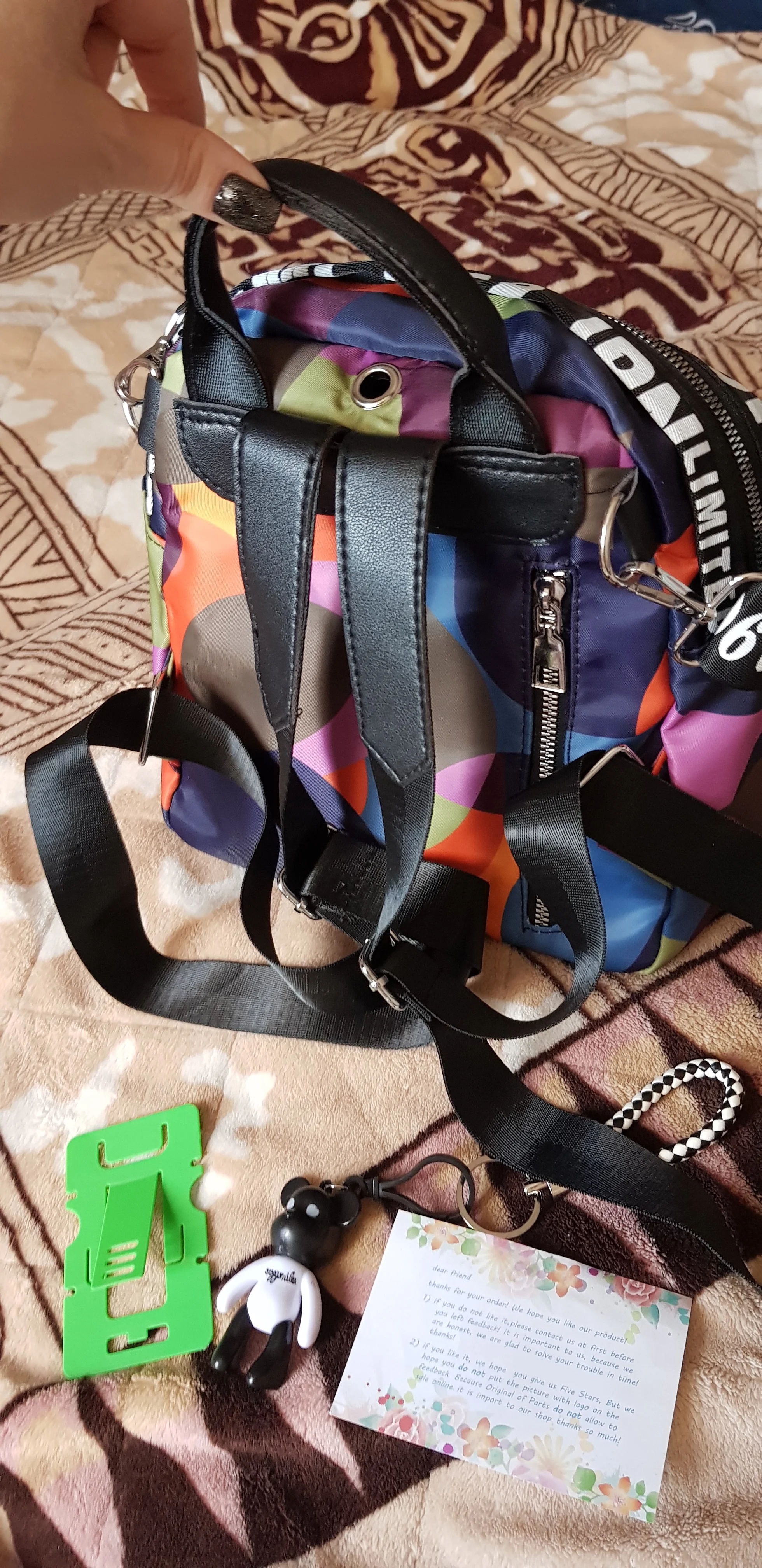 Отличный рюкзачок! компактный, но вместительный, можно носить как сумку. Продавец отзывчивый, попросила положить мне второй брелок для подруги, у нее такой же рюкзак, только жёлтый, пришел без брелка. Теперь она рада, с брелком смотрится гораздо лучше! За это отдельное спасибо продавцу! ❤️❤️❤️