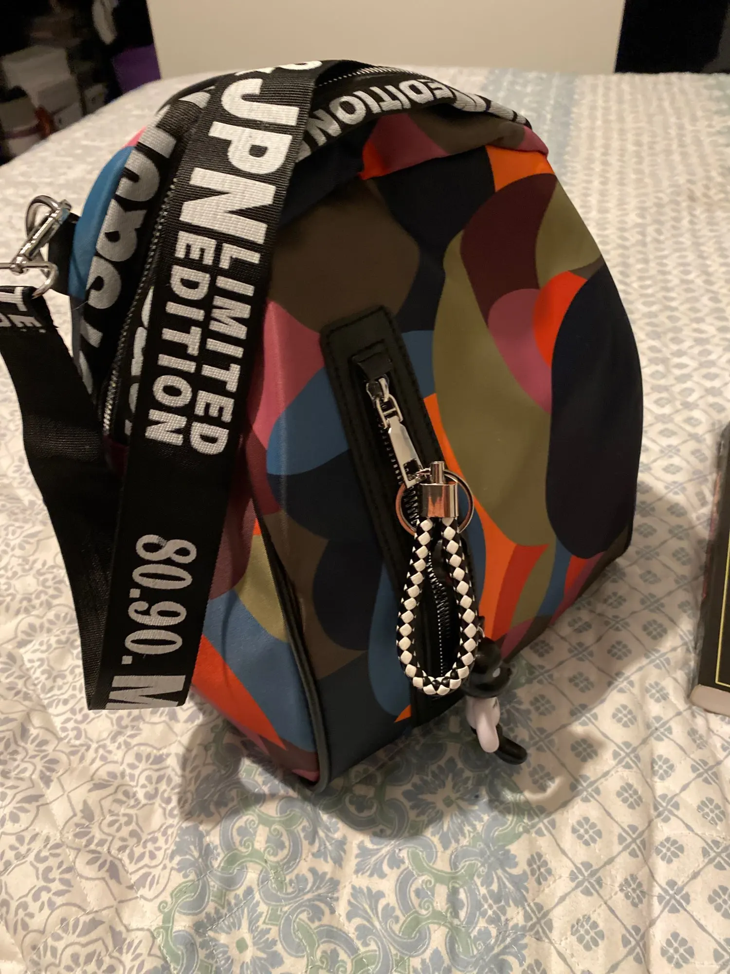 Очень позитивный рюкзочок, универсального цвета :) Небольшой, но широкий. Городской вариант. Два больших кармана снаружи, один на замке внутри. Расправляется треугольником, имеет ремень для ношения на плече. Тканевый, не знаю насколько водонепроницаемый, но выглядит прочным. В комплекте брелок и подарок от продавца - подставка под смартфон. Рекомендую, рюкзак точно как на фото продавца! Доставка полторы недели.
