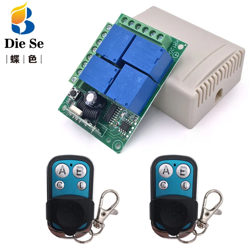 DC 12V 10A 4CH 433Mhz rf переключатель релейный приемник и передатчик 4 кнопки для гаражного дистанционного управления и дистанционный светильник