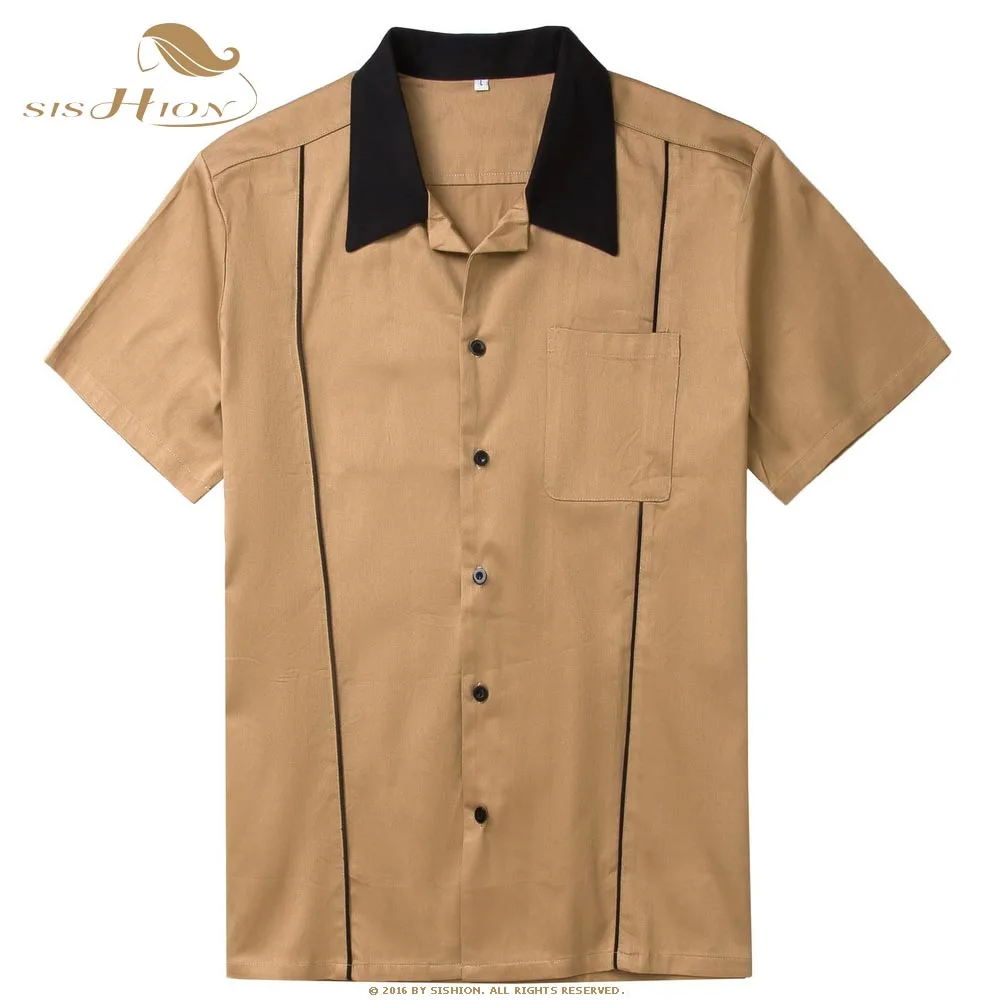 SISHION 2021 коричневый, серый зеленый Мужская рубашка ST118 хлопок Кнопка вверх Классический Ретро Боулинг Рубашка размера плюс рубашки с коротким рукавом