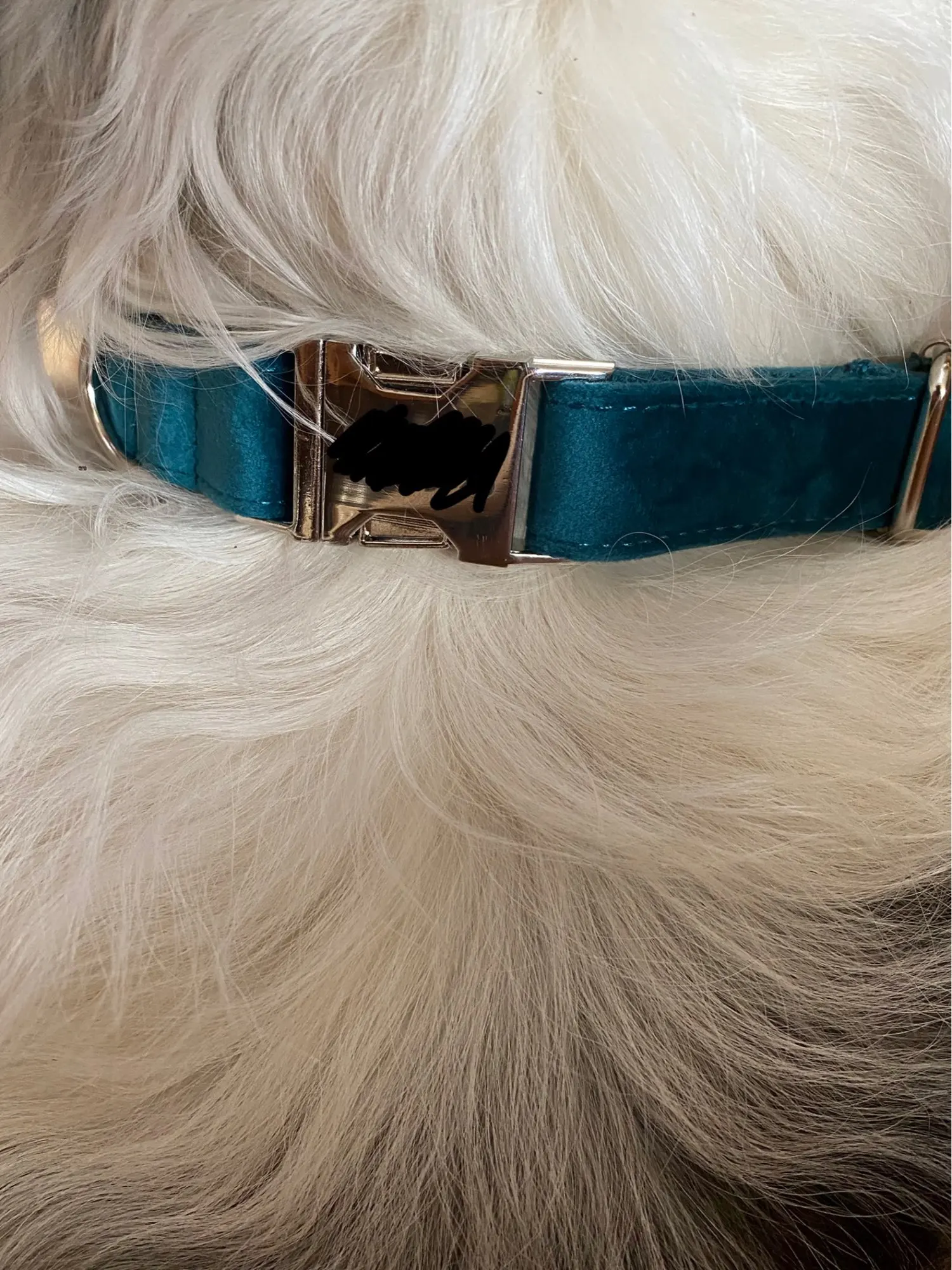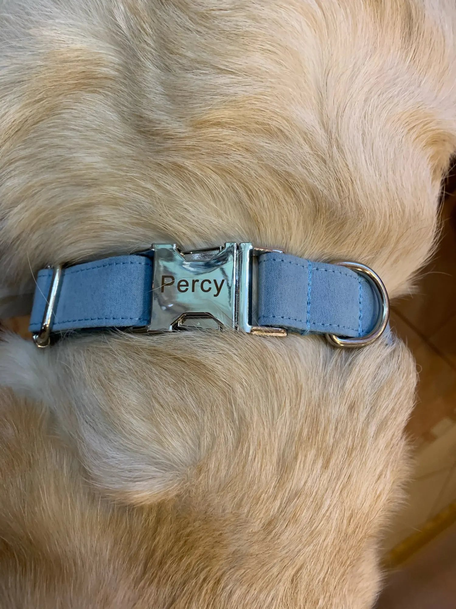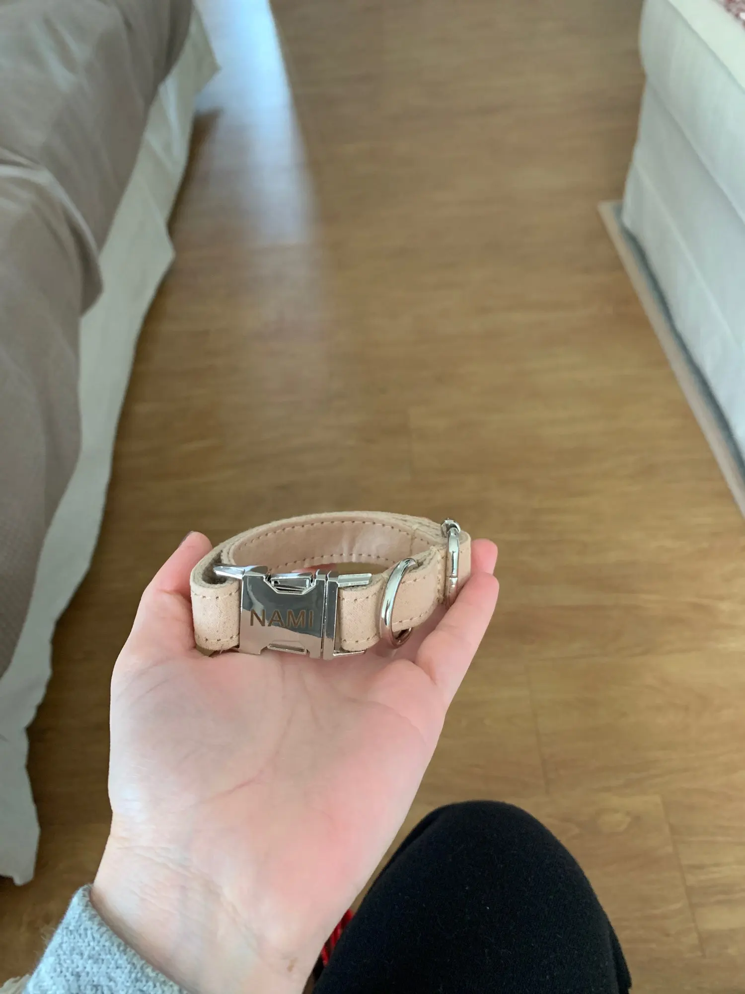 Милый собачий ошейник и поводок, приятный на ощупь (как будто из велюра), гравер сделан хорошо, для серебряных деталей нет царапин, стоит своих денег :) ошейник может плотно подогнать, если дело доходит до цепи. Рекомендуем!