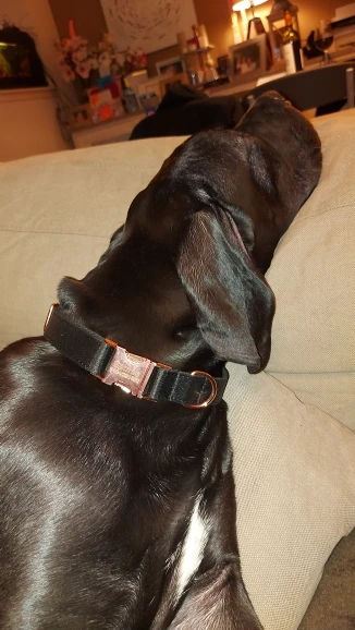 Очень красиво и солидно. Пряжка сильная. Это хорошо подходит для моей собаки