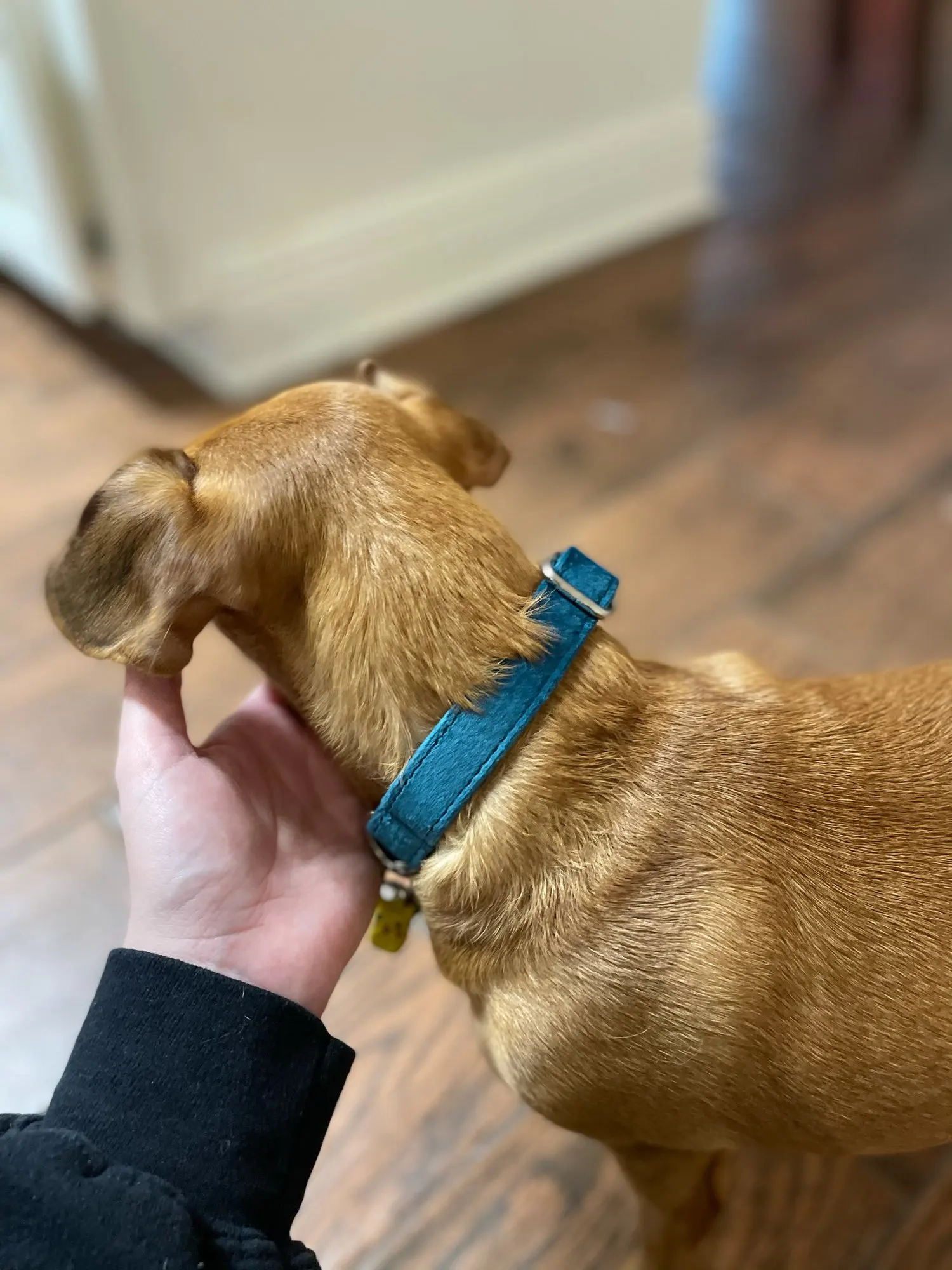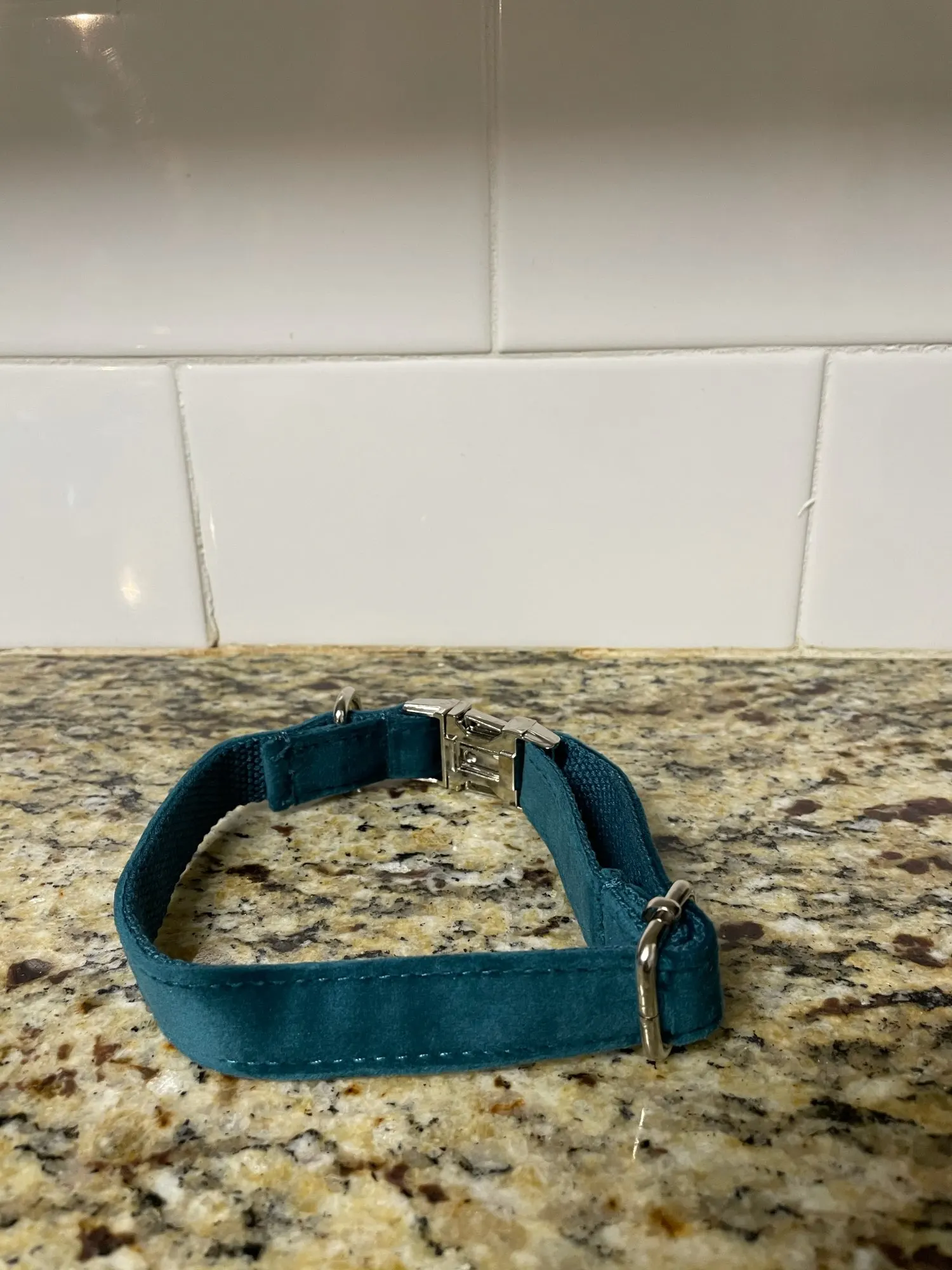 Хороший ошейник, ткань прочная и мягкая. Очень красивый цвет, лучше чем на картинке. Удобная застежка