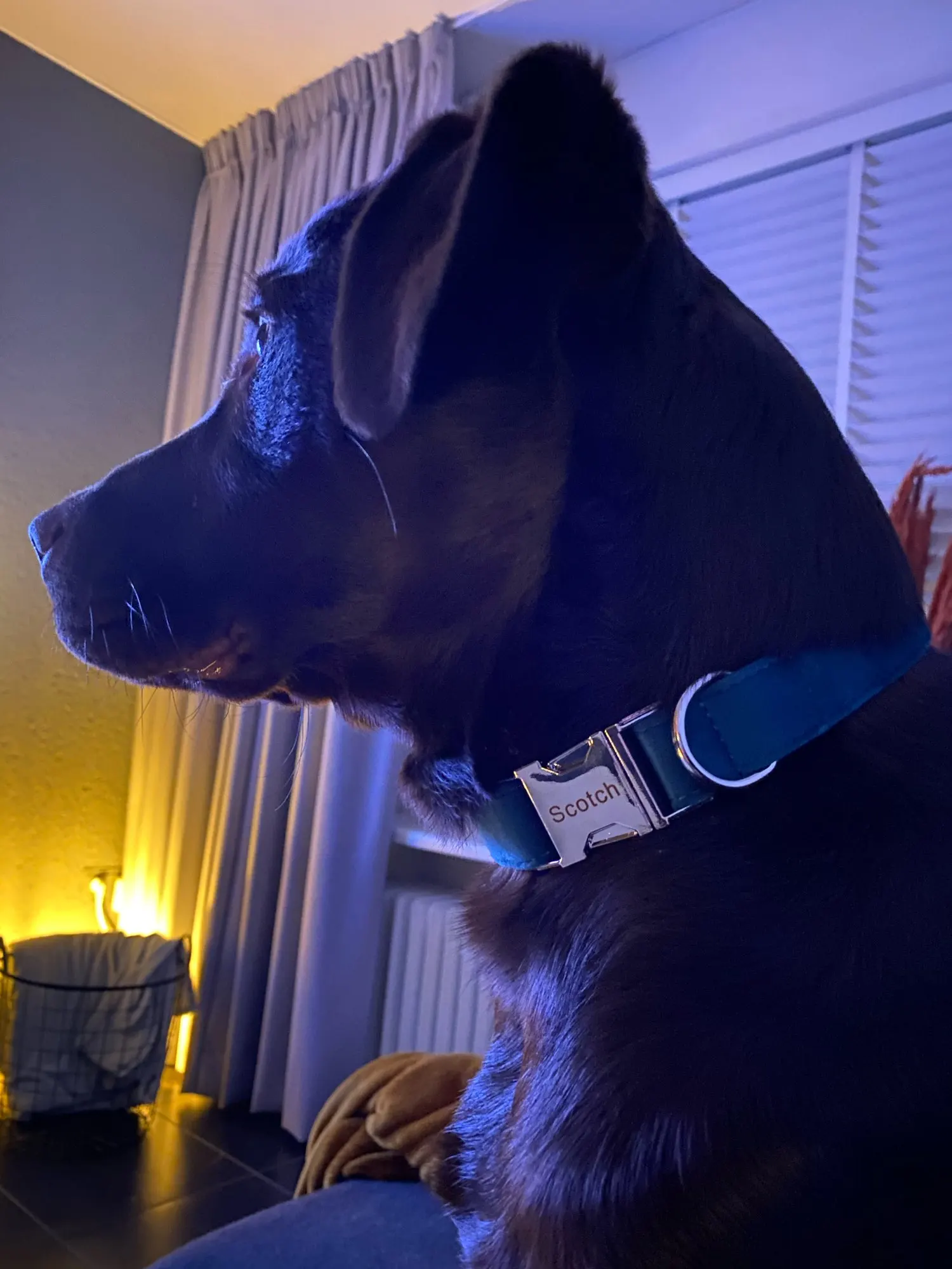 Ошейник надежный, сшит хорошо. Тяжёлый немного и широкий, только для больших собак. Гравировка верная, все хорошо