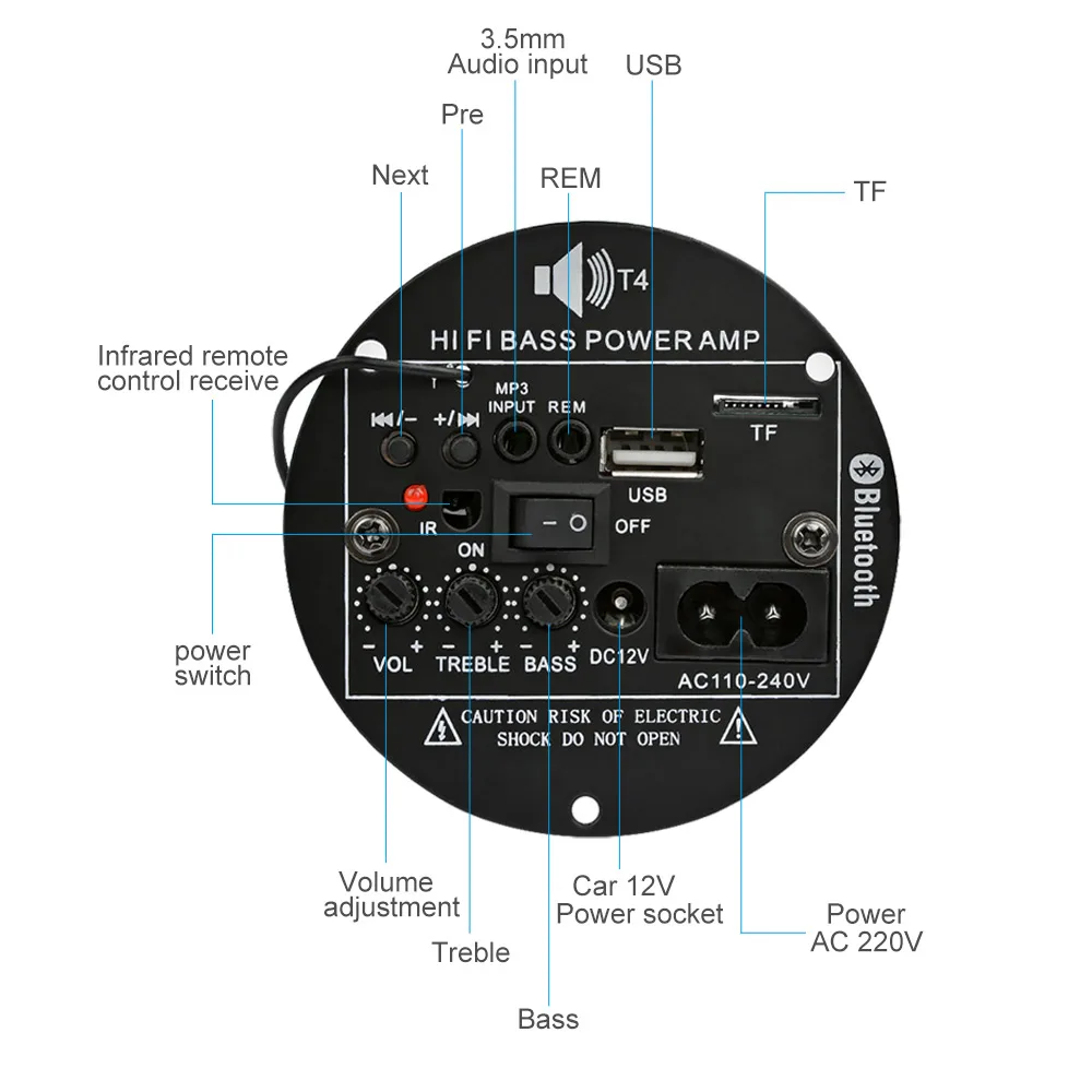 Плата усилителя AIYIMA Bluetooth, 30 Вт, 12 В, 220 В, моно-сабвуферный усилитель, поддержка TF, USB, FM, для 5-10, дюймовый басовый динамик, сделай сам