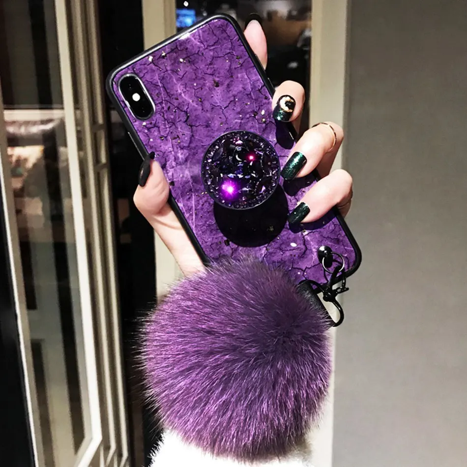 ХарактеристикиLuxury Glitter Bracket Furry Hairball Case For iPhone